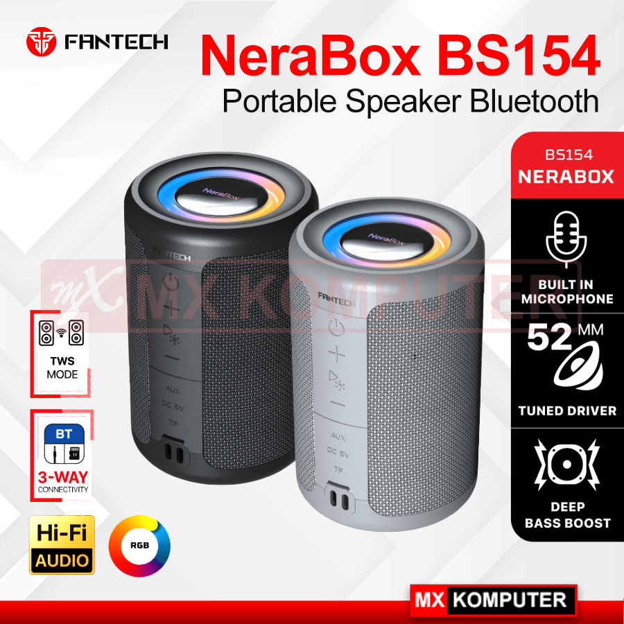 Speaker Fantech NeraBox BS154 Bass 52mm 5W RMS TWS Mode Bluetooth 5.4 RGB 1200 mAh
