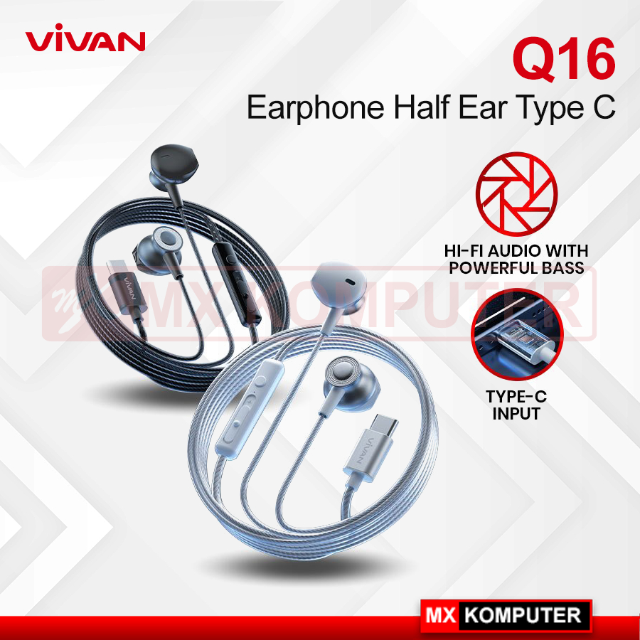 VIVAN Q16 Earphone Half Ear Kabel Stereo Powerfull Bass Wired Headset Type C