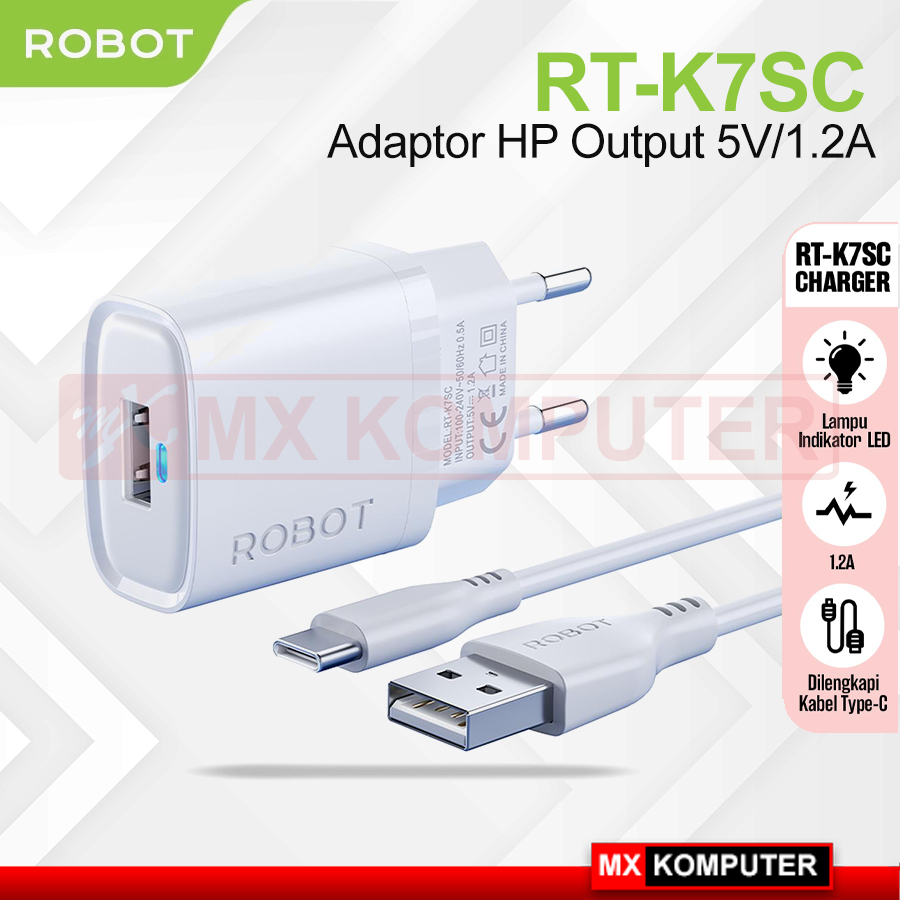Adaptor ROBOT RT-K7SC Kepala Charger 1.2A with Type-C Cable