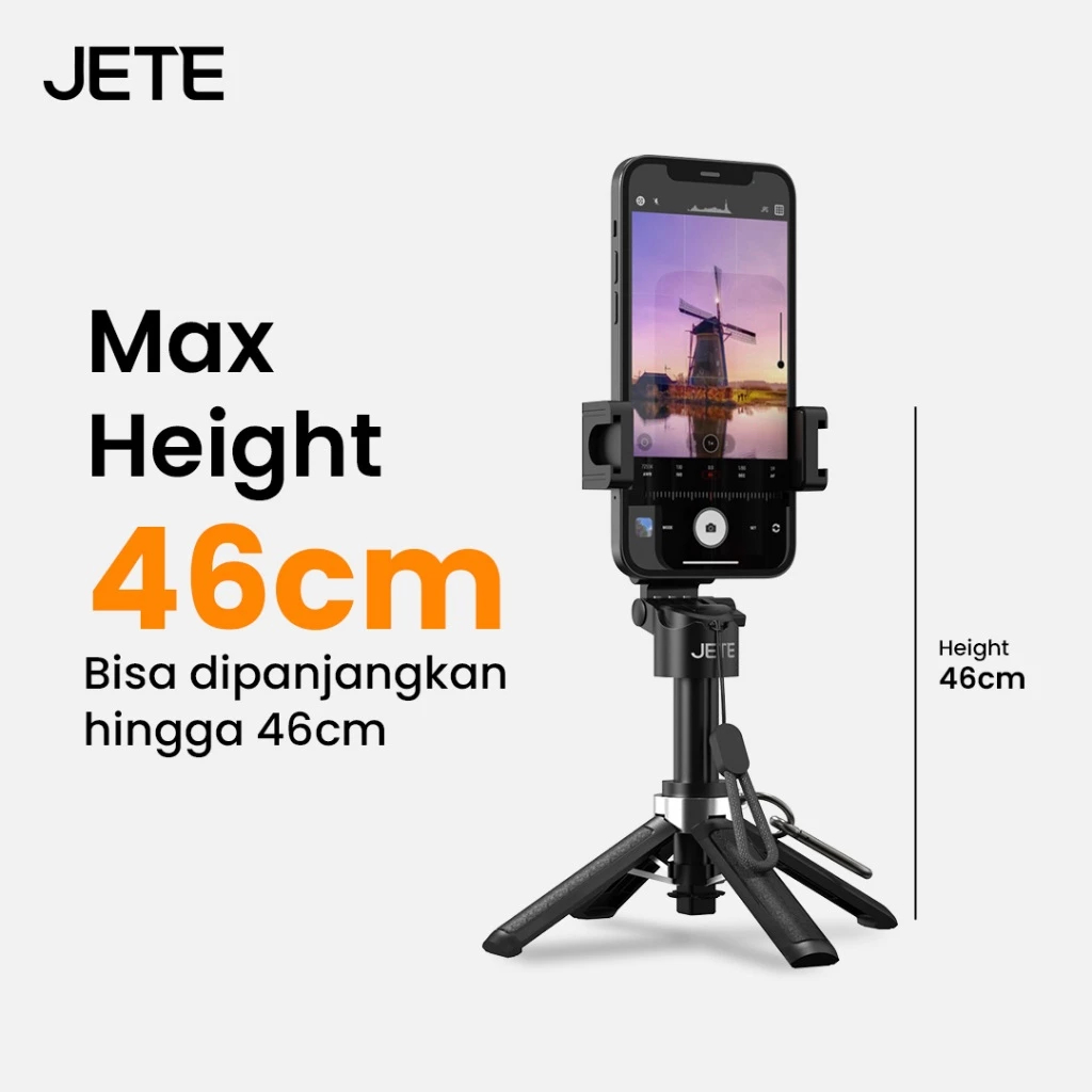 Tripod Bluetooth JETE H19 Portable Mini Tongsis Selfie Stick 360 Rotation