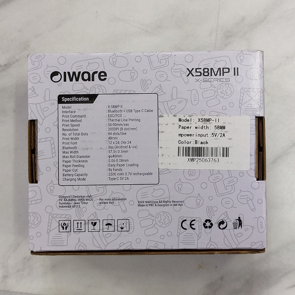 Printer Thermal Bluetooth Iware X-58MP II 58mm USB Bluetooth Type-C