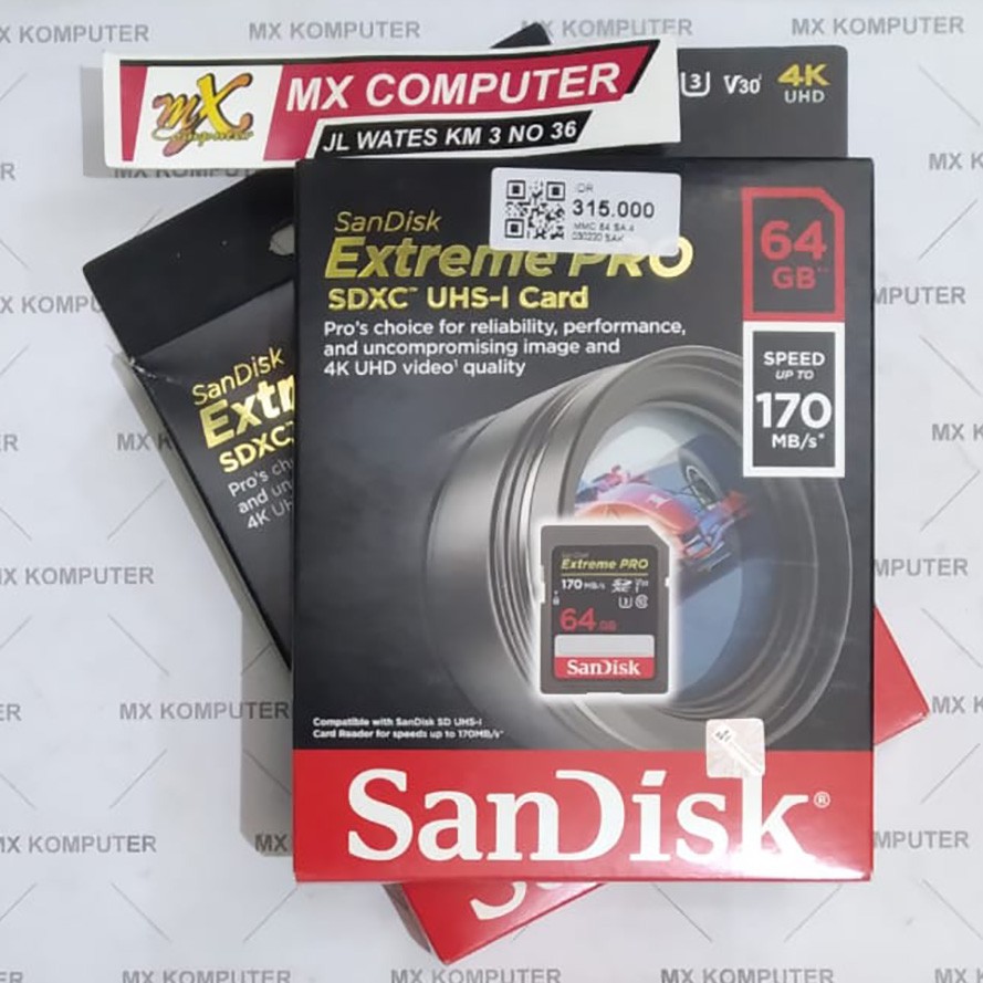 SanDisk SDXC Card Extreme Pro 64GB Class 10 U3 V30 for 4K UHD (Up to 200MB/s)