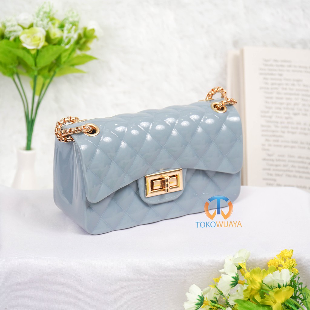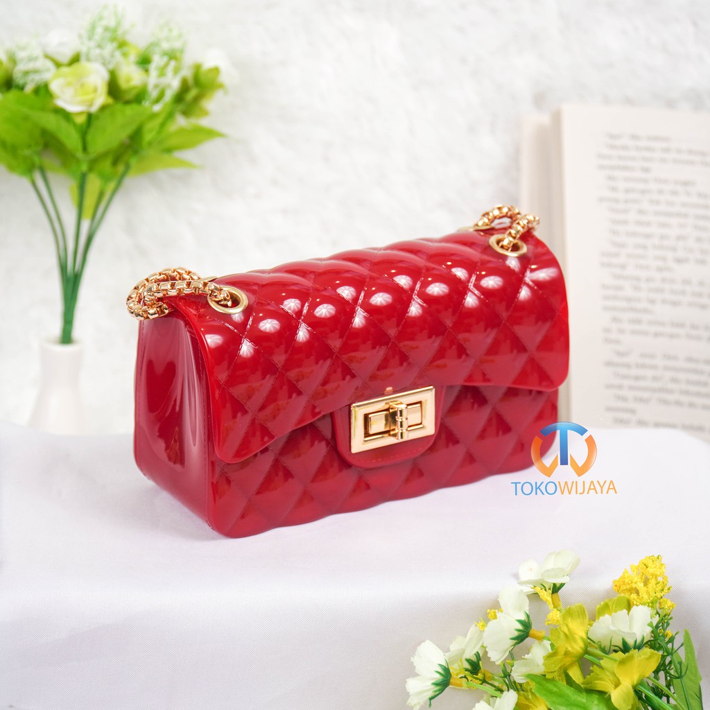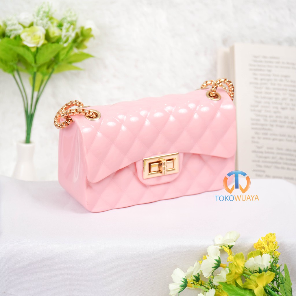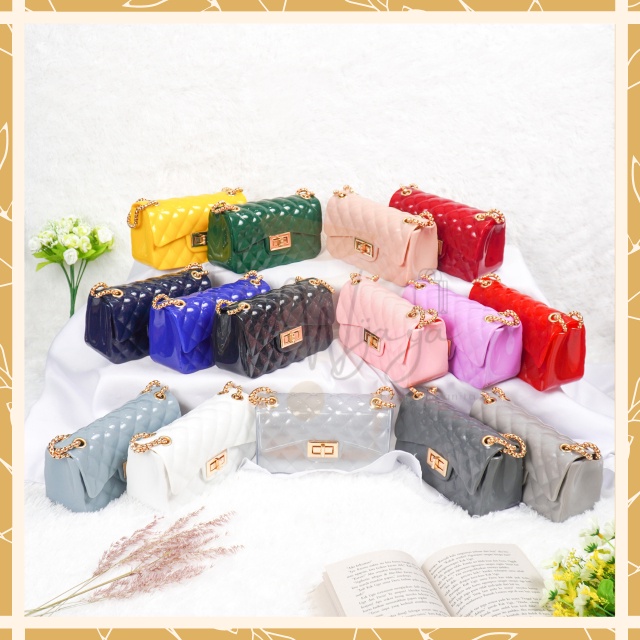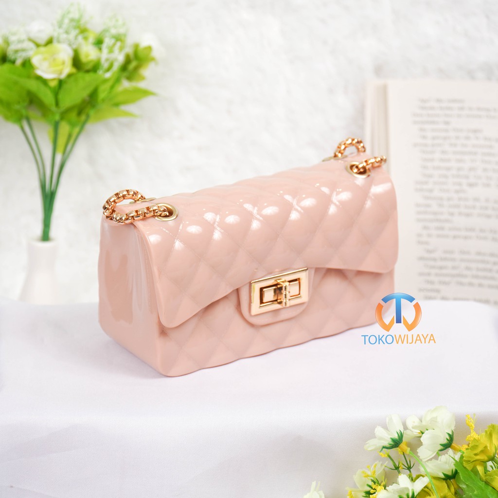 Tas Wanita Jelly Glossy Size 17 Cm Rantai Emas
