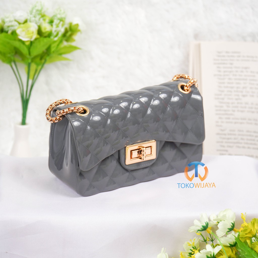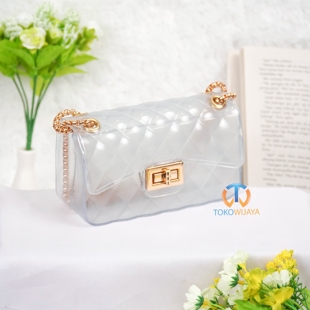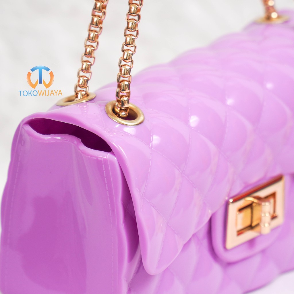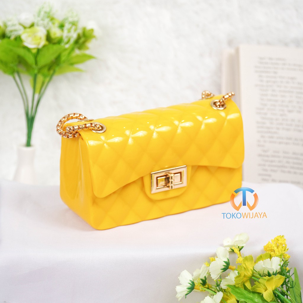 Tas Wanita Jelly Glossy Size 17 Cm Rantai Emas