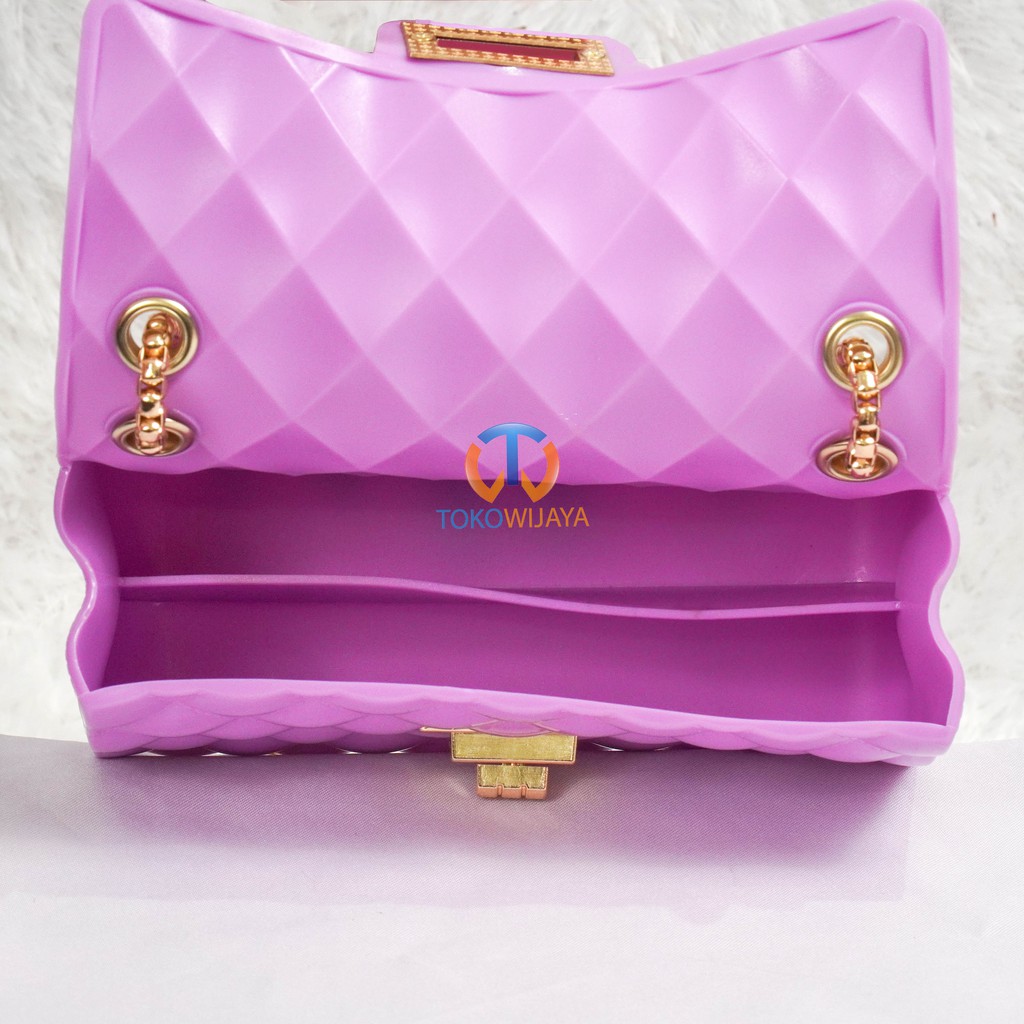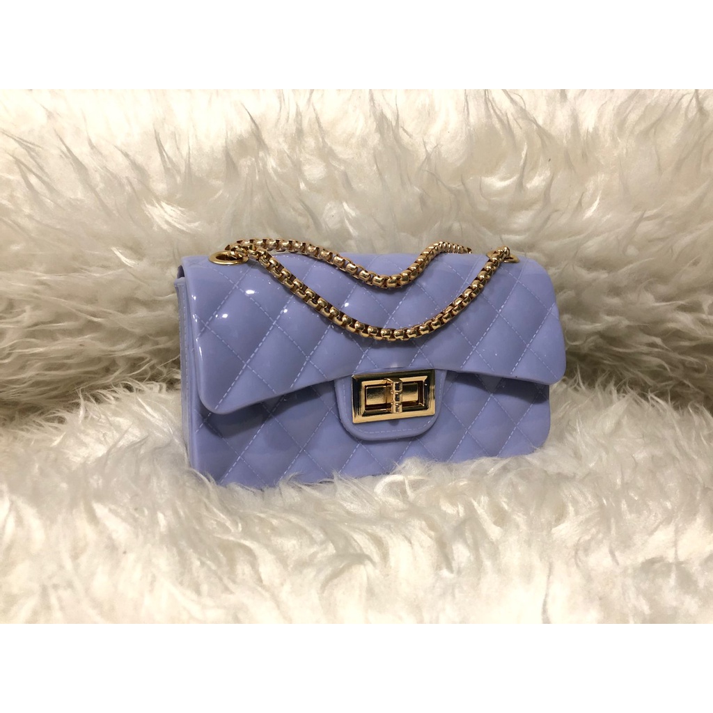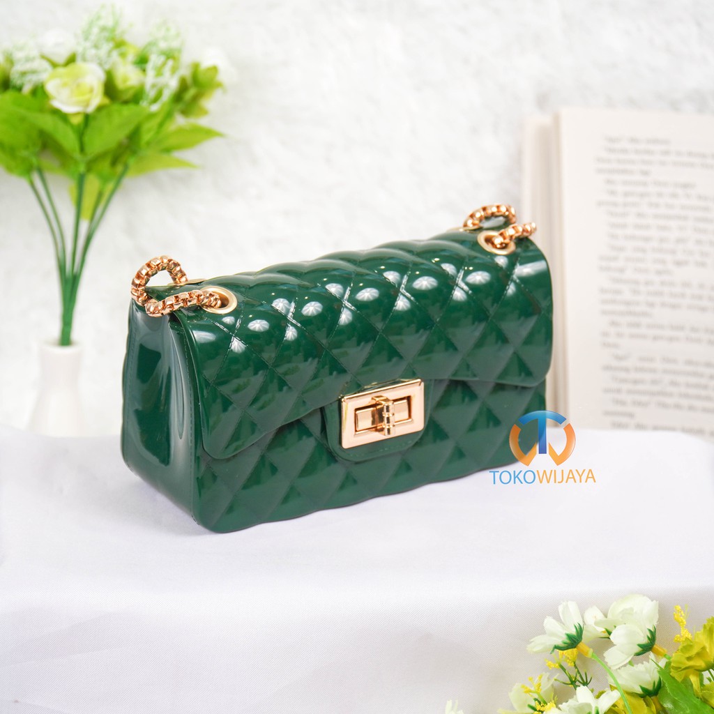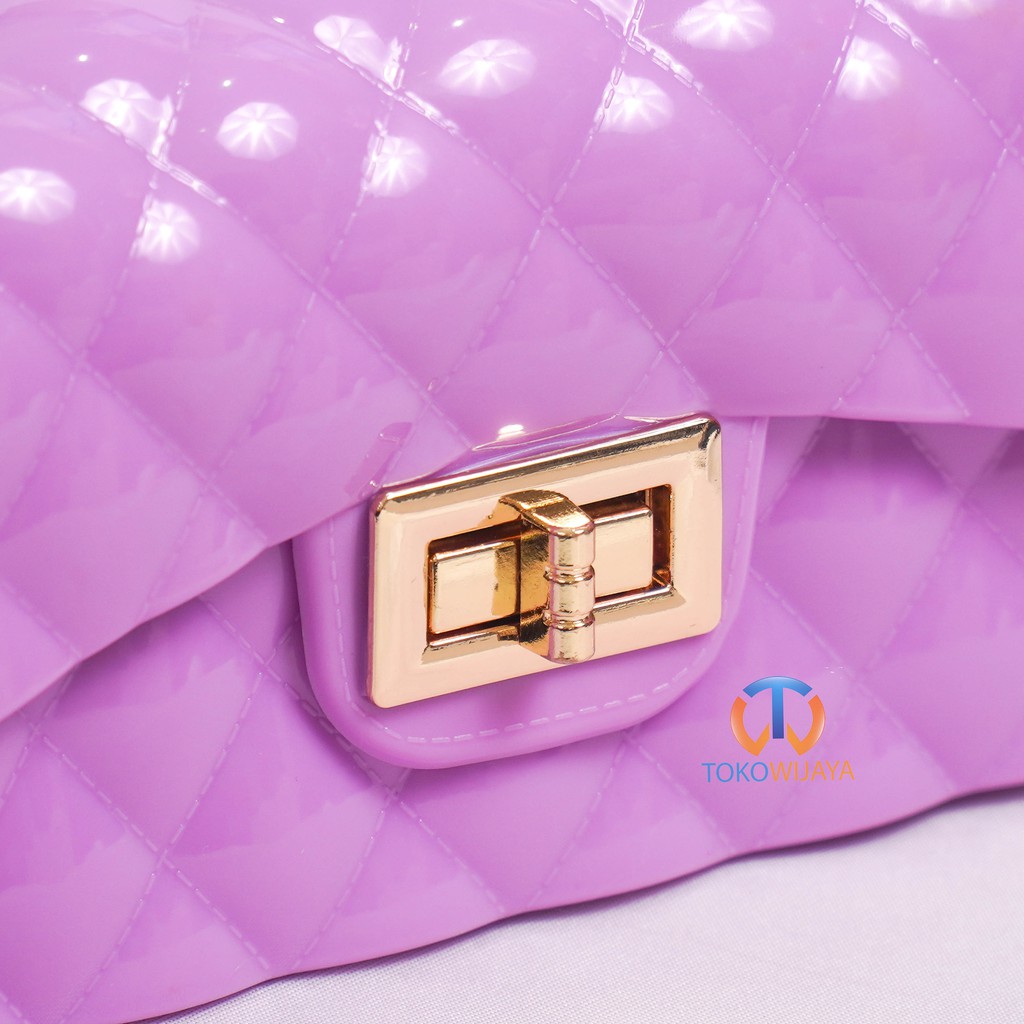 Tas Wanita Jelly Glossy Size 17 Cm Rantai Emas