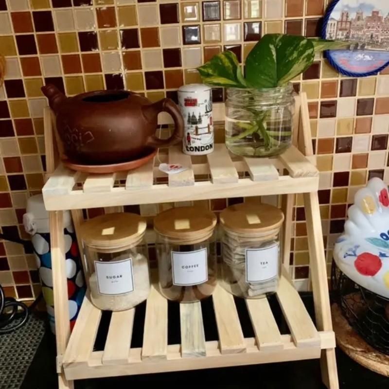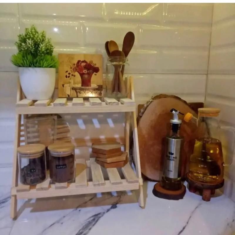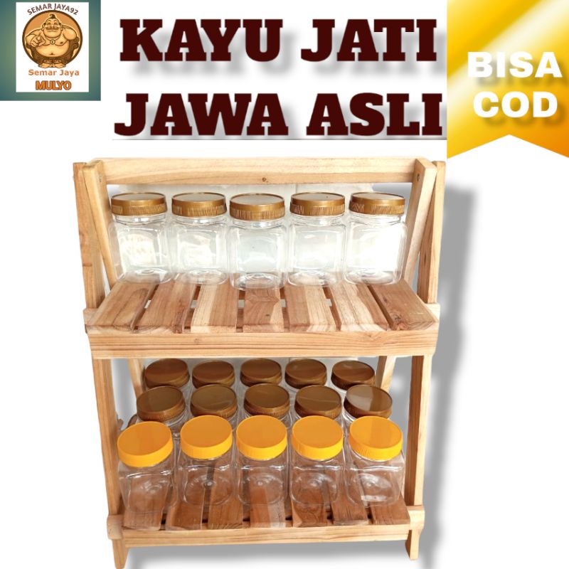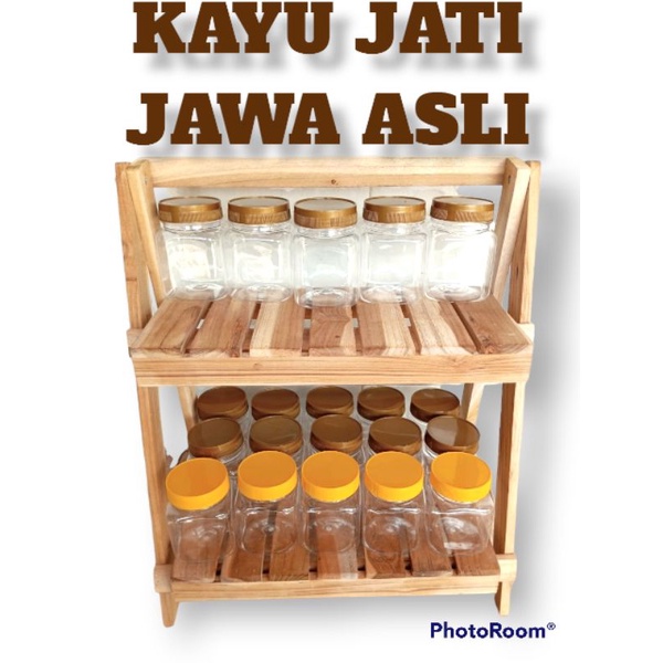 PROMO RAK BUMBU DAPUR LIPAT ESTETIK SERBAGUNA MODEL 2 TINGKAT SUSUN DARI KAYU JATI JAWA ASLI