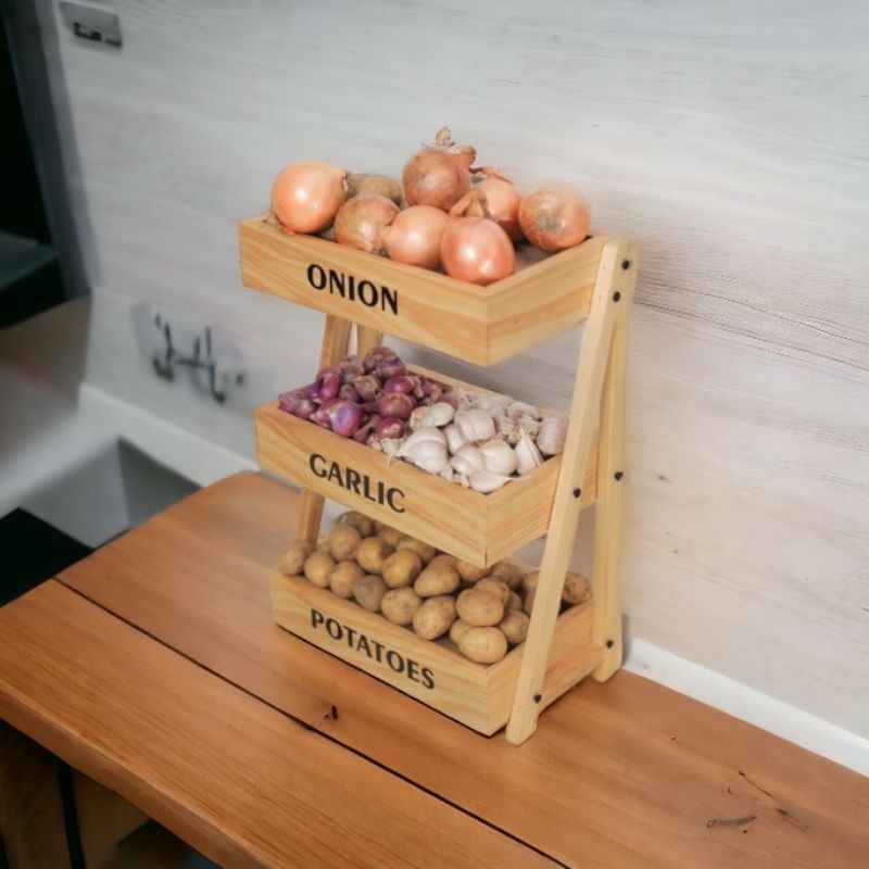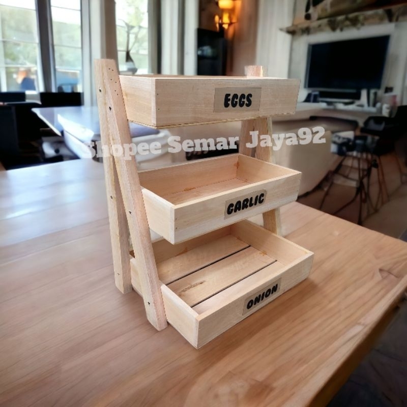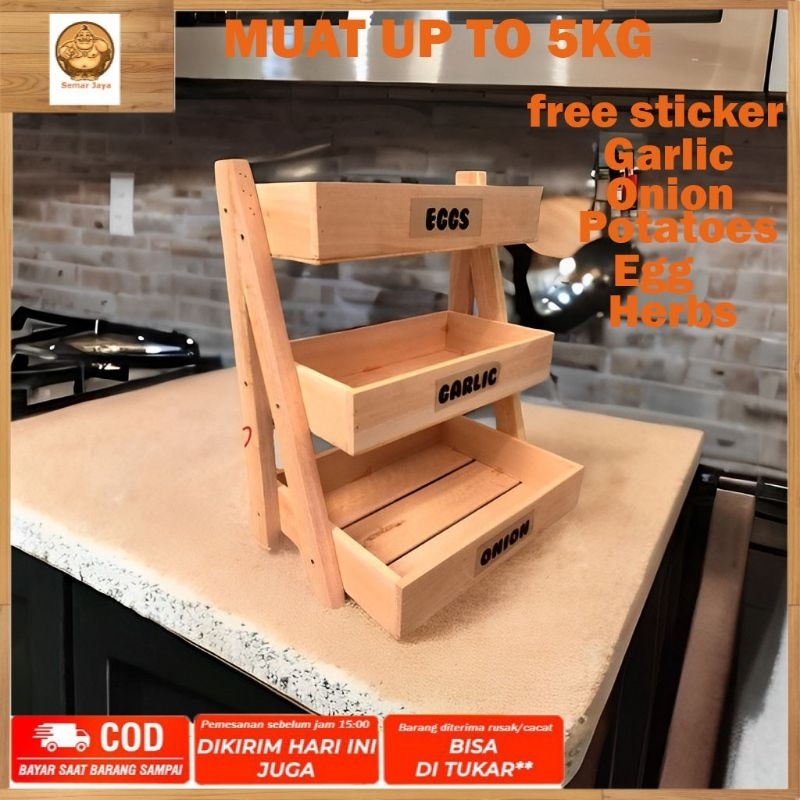 (GRATIS STIKER)RAK BAWANG BUMBU DAPUR KAYU SERBAGUNA | RAK TELUR | RAK SAYUR | RAK SUSUN BAHAN KAYU MAHONI