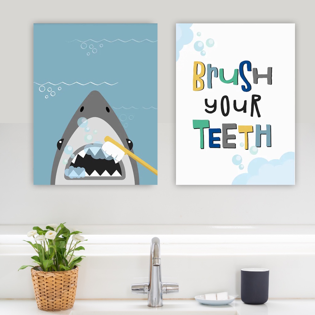 Wall Decor Bathroom Rules Hiasan Dinding Toilet Kamar Mandi Anak Brush Your Teeth Minimalis Funny Lucu 20 x 30