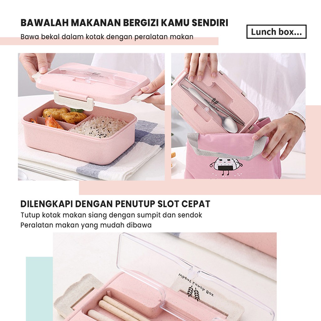 MATOUGUI - Lunch Box Set Kotak Makan Siang BPA Free Tempat Makan Bento Multifungsi TMS19