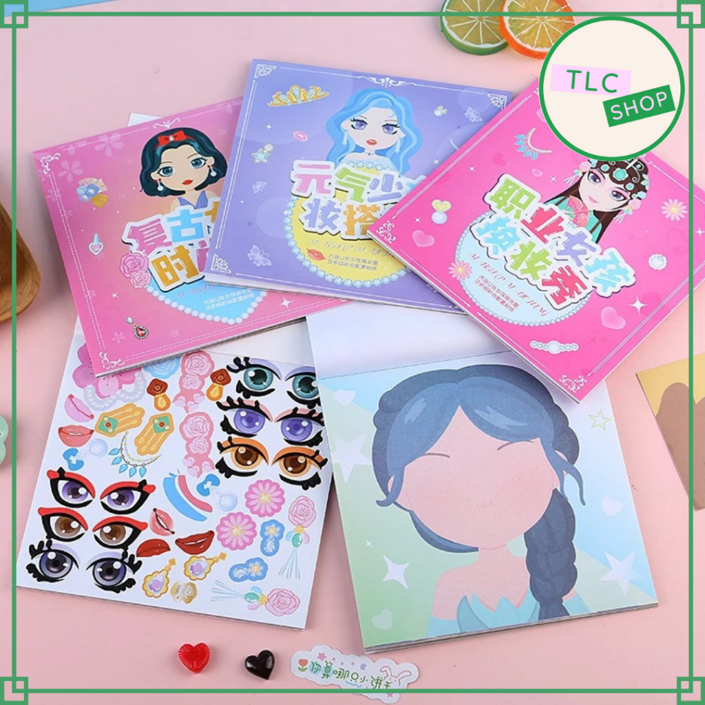 DIY Stiker Make Up 1 SET ISI 4 buku / Mainan Edukasi DIY Book Sticker Make Up / Make Up Princess Sticker Book