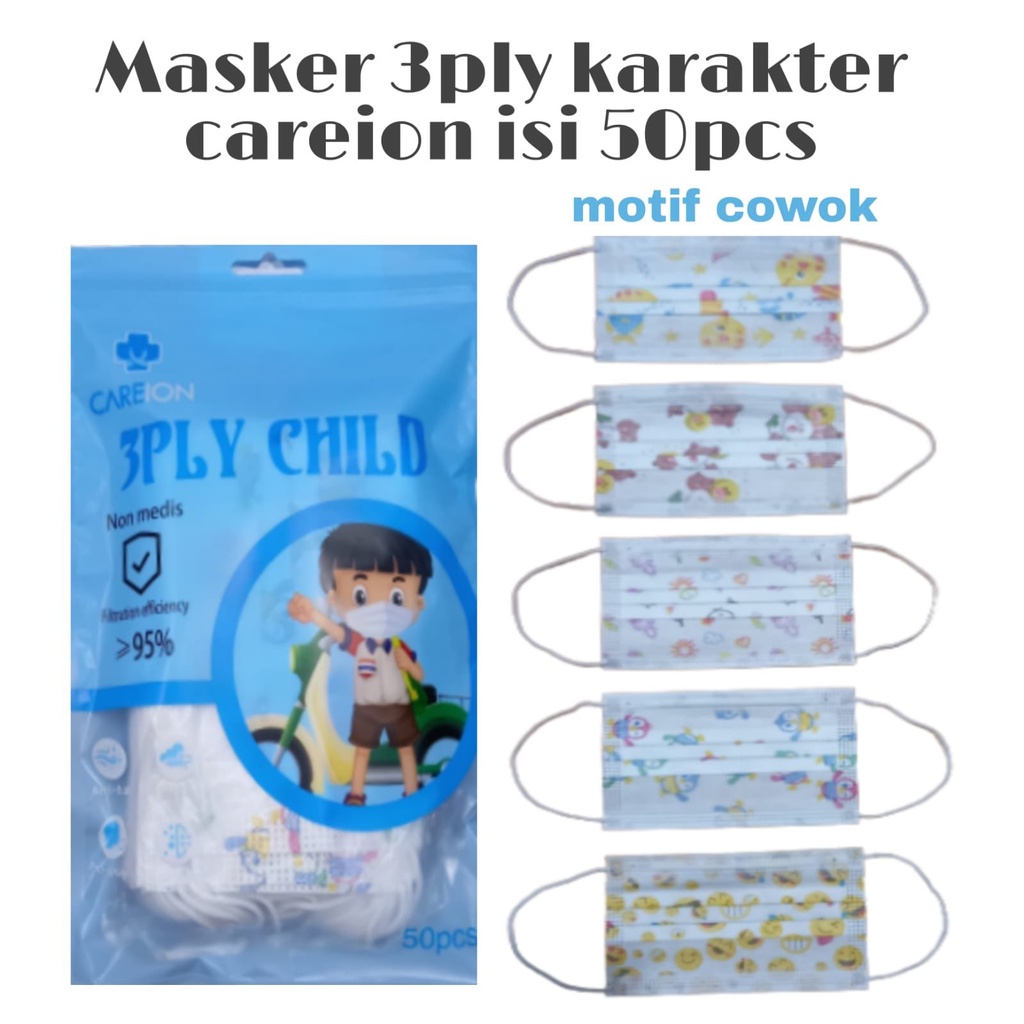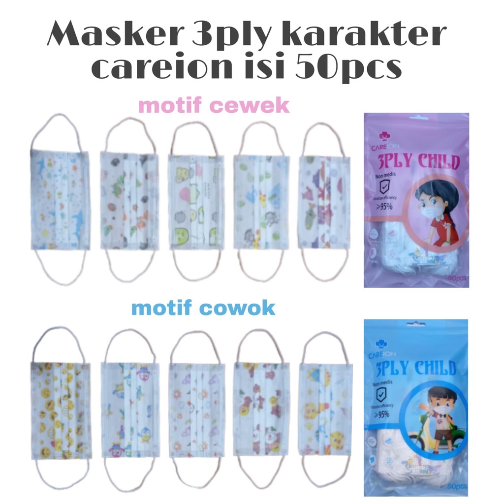MASKER 3PLY KARAKTER ANAK ISI 50PCS/BOX UMUR 3-12 TAHUN [PERFECTHOME]