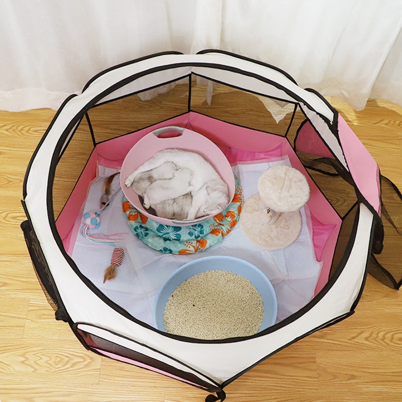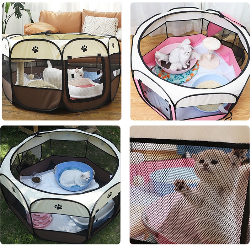 Pagar Tenda Lipat Portabel dengan 8 Panel untuk Anjing / Kucing Kandang Lipat Hewan Bahan Kain