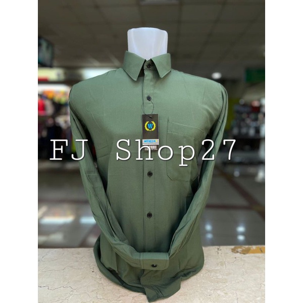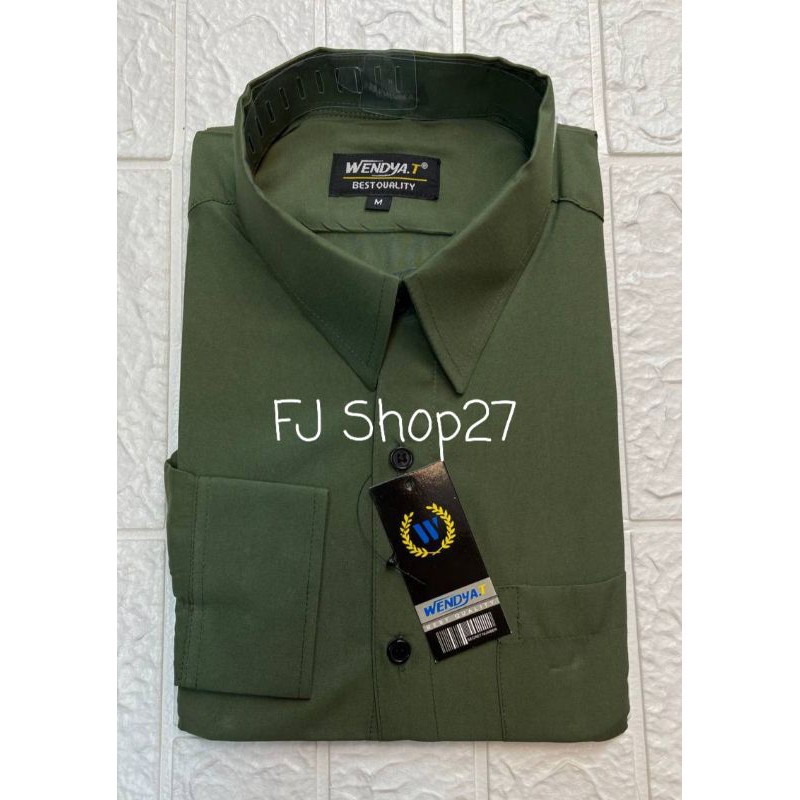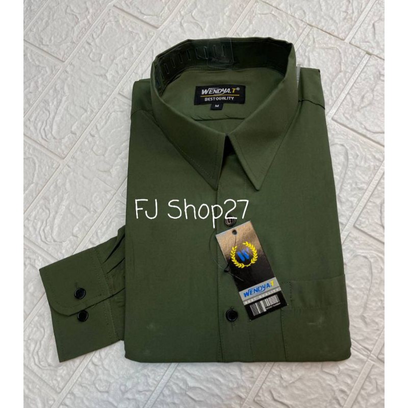 Kemeja Polos Pria Lengan Panjang Formal Reguler Wendyat, Wendya.T / HIJAU ARMY / HIJAU LUMUT