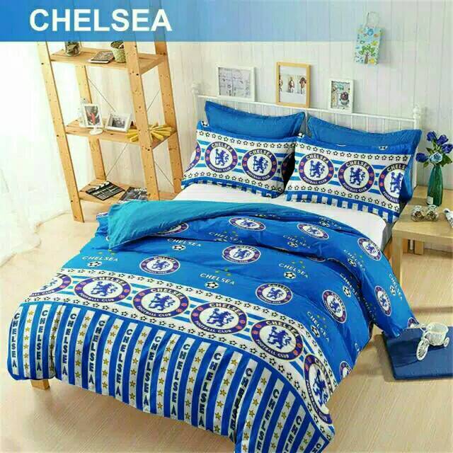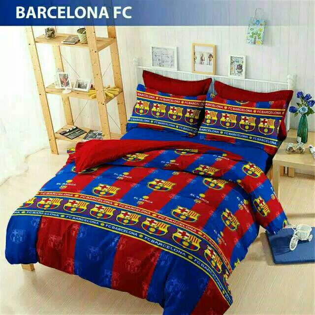 Bedcover Set Motif Barca Dan Chelsea Ukrn 160x200 - 200x200 Katun Panca Free Tambahan Karet Anti Geser