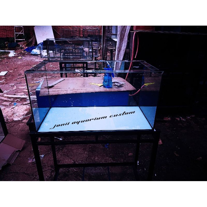 aquarium 70x40x40 alas 8mm keliling 5 mm dan rak hollo