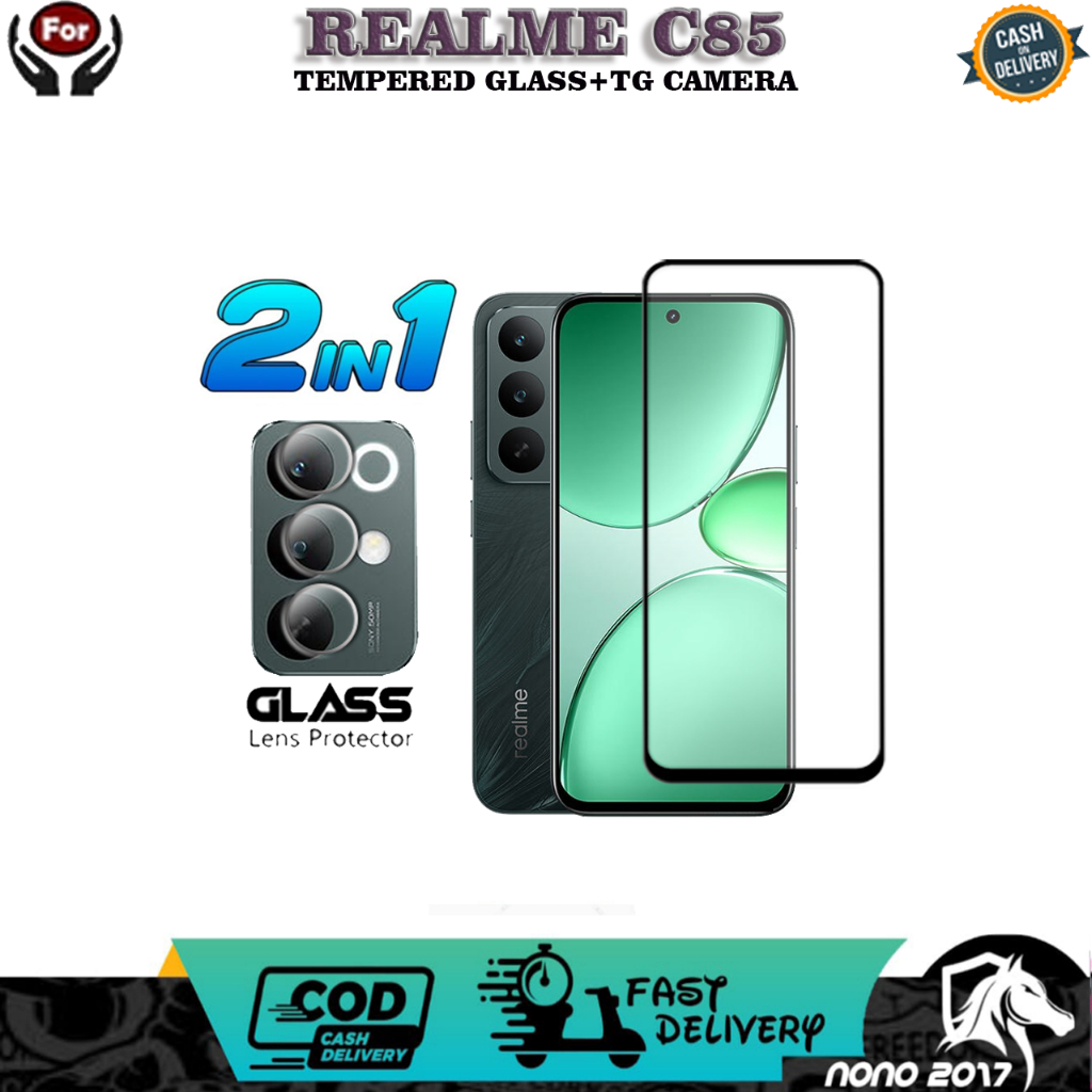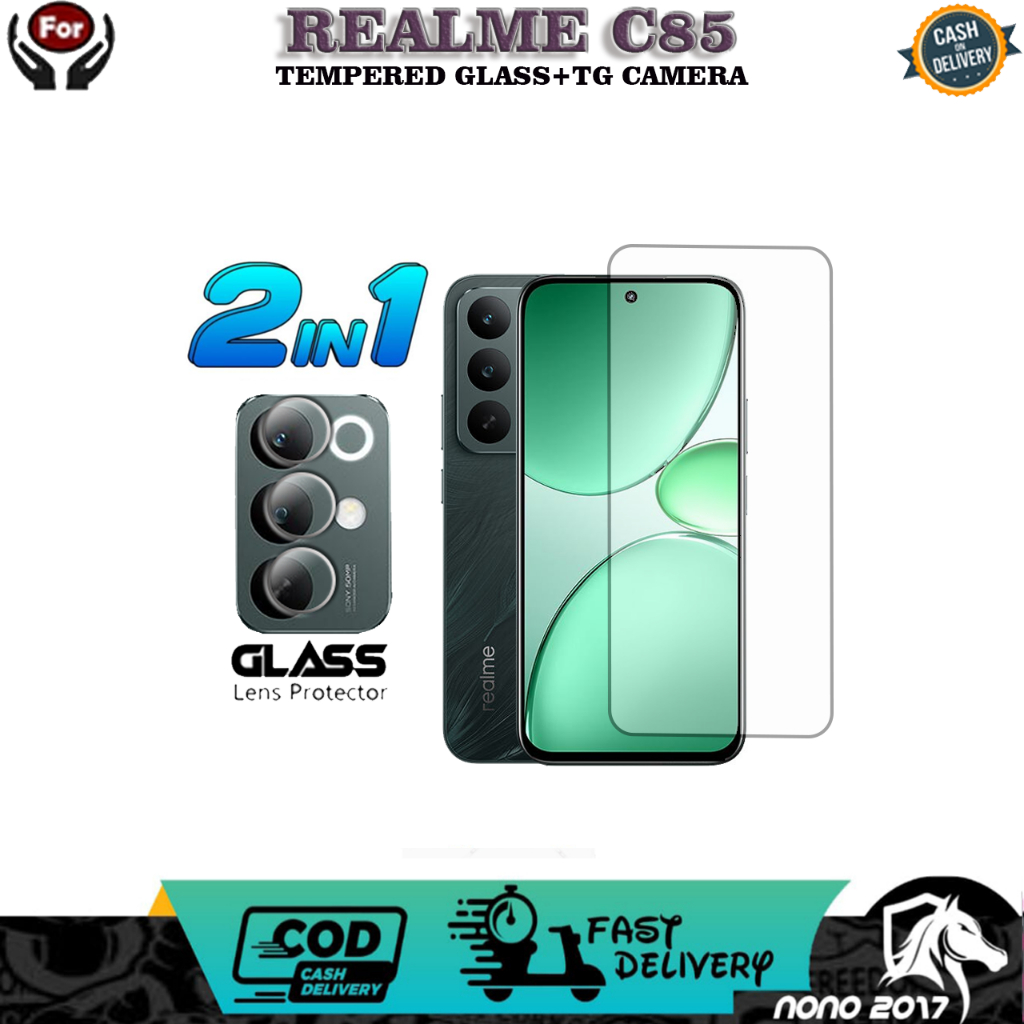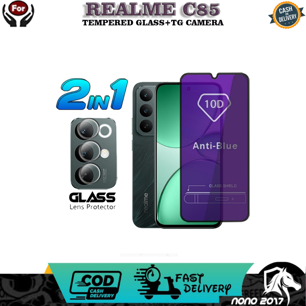 2IN1 TEMPERED GLASS BLUE REALME C85 C85 PRO BONUS LENSA CAMERA