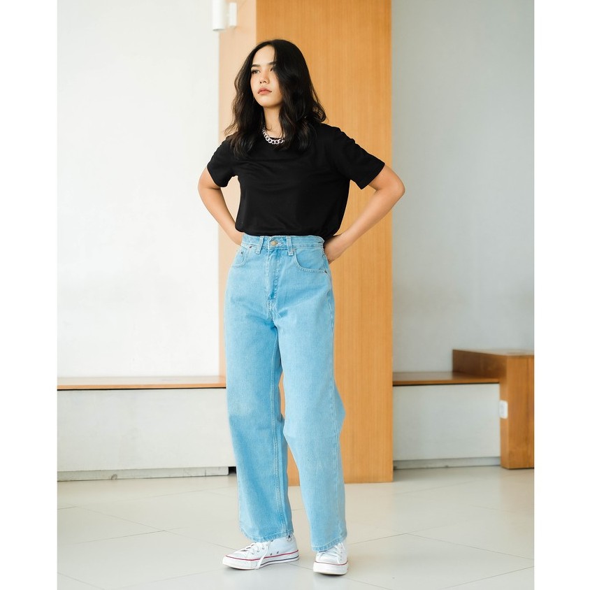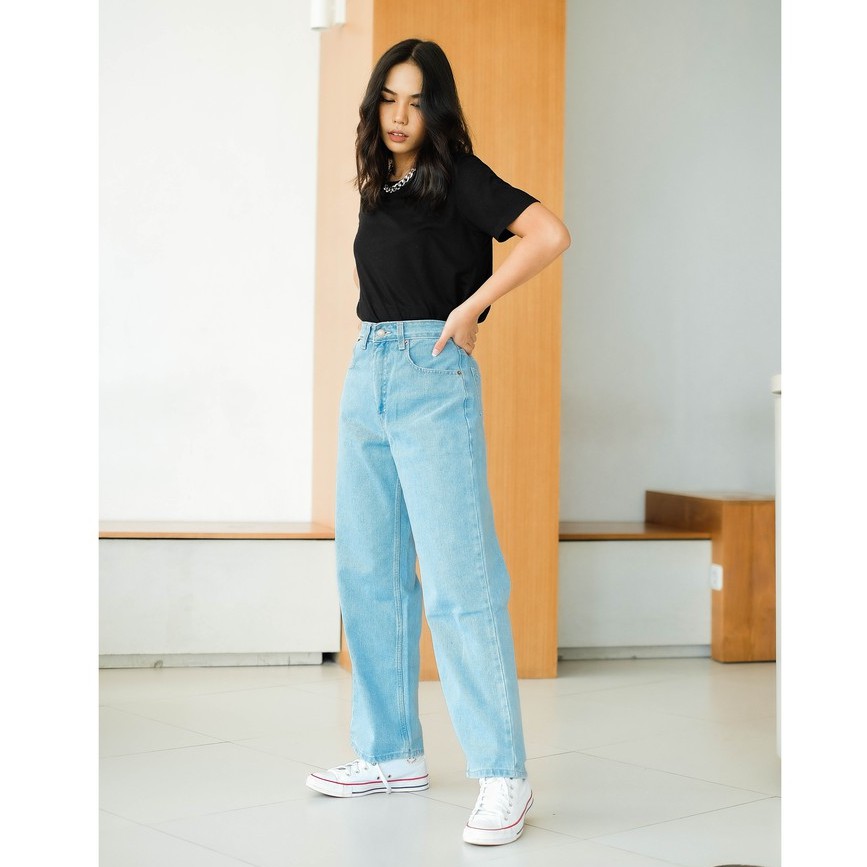 RAINBOO - Celana Baggy Loose Jeans High Waist Wanita - Light Blue