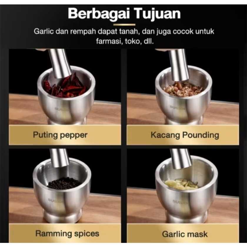 COBEK STAINLESS/ULEKAN STAINLESS SUS 304/ALAT PENUMBUK BUMBU DAPUR MORTAR PESTLE TEBAL