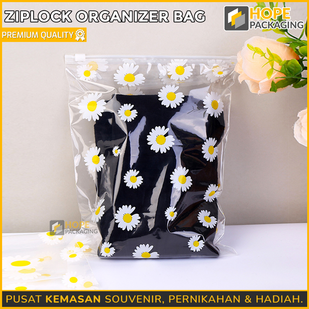 [HARGA /10 PCS] Travel Pouch Zipper Klip / Ziplock Travel Organizer Bag / Ziplock Motif Daisy