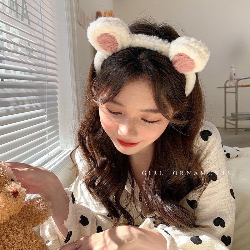 Town Shell fluffy cat bear headband / bando korea kucing beruang / bando bulu / bando empuk besar lucu korea import