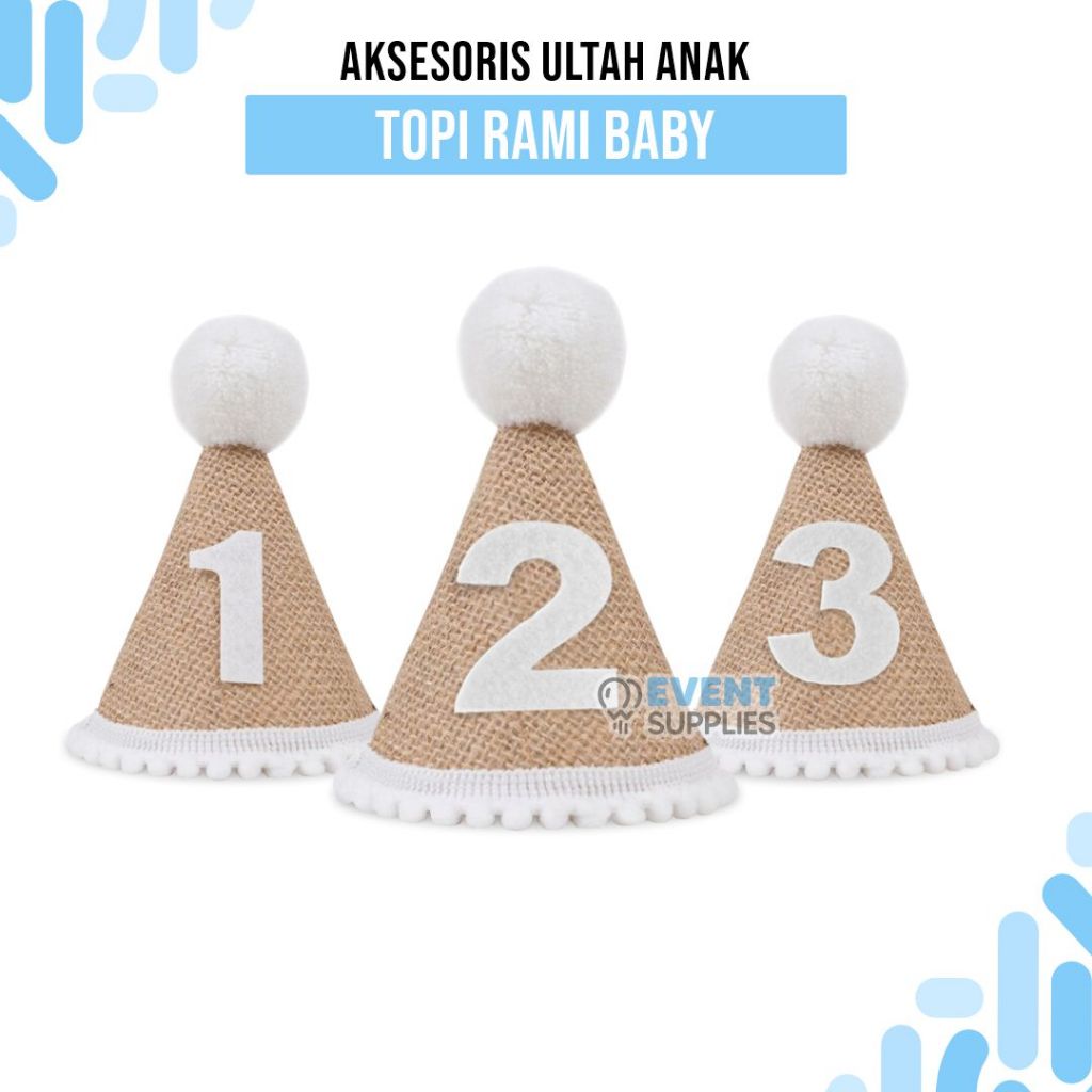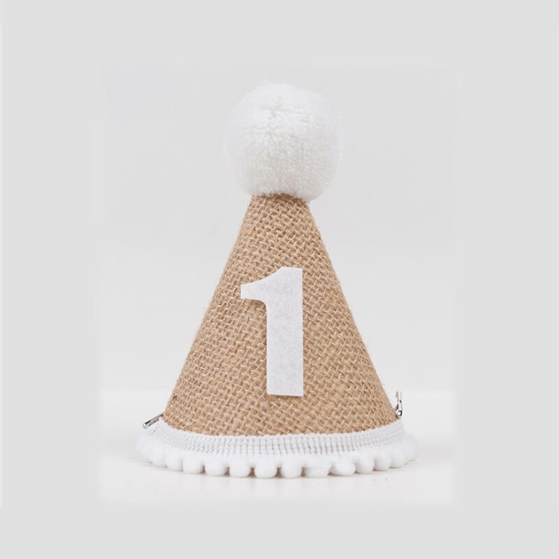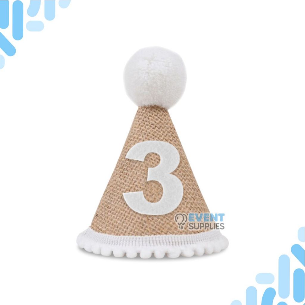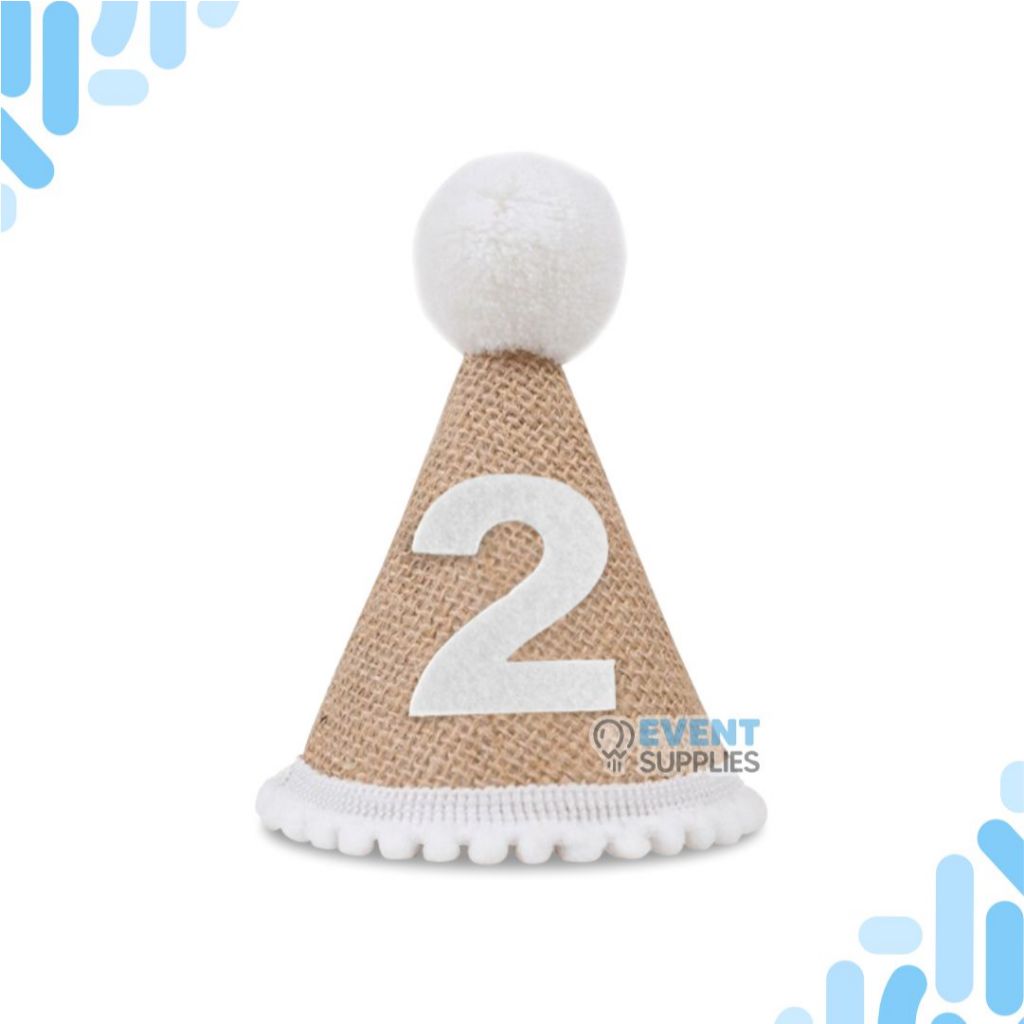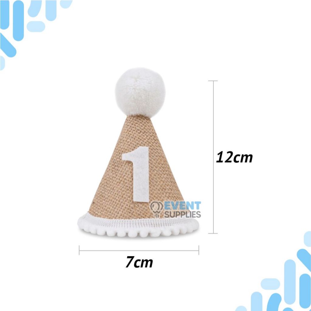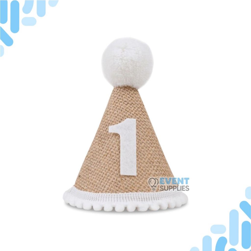 Topi Rami Turning One Anak / Topi Kerucut Ulang Tahun Anak Pertama Estetik Baby Party Linen Goni Nomor 1