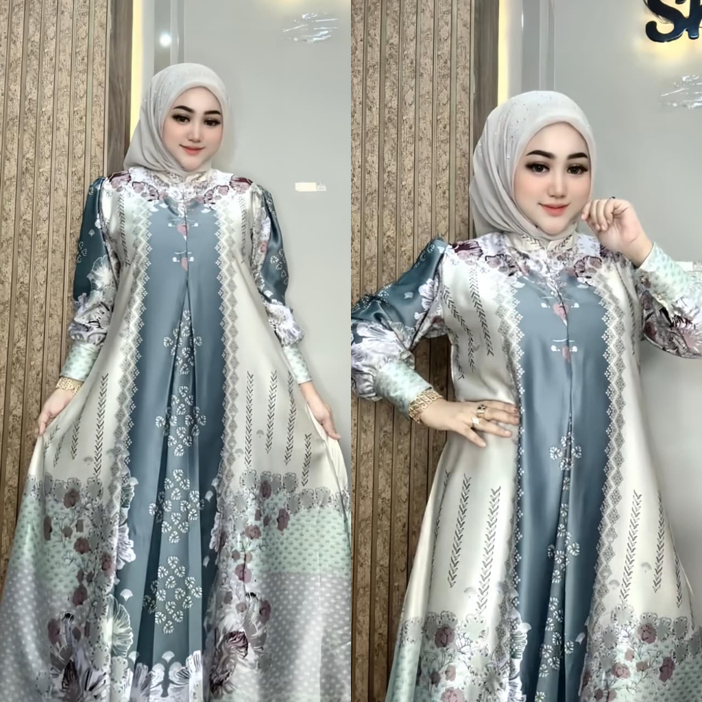 Promo!!! Zamahira Dress Gamis Silk Terbaru Gamis Lebaran 2026 Gamis Muslimah set Kemeja Motif