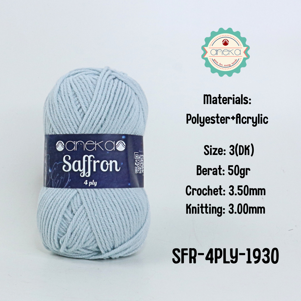 ANEKA - Benang Rajut Saffron 4 Ply / Crochet Knitting Yarn - 1930 - Pearl Gray