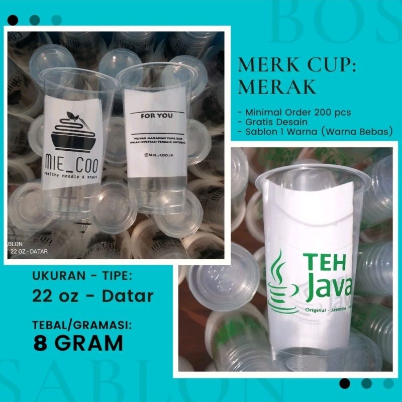 Cup Sablon 22 oz - Datar & OVAL - Minimum Order 200 pcs - Merk Cup Merak - Tebal 7, 8 & 9 gram
