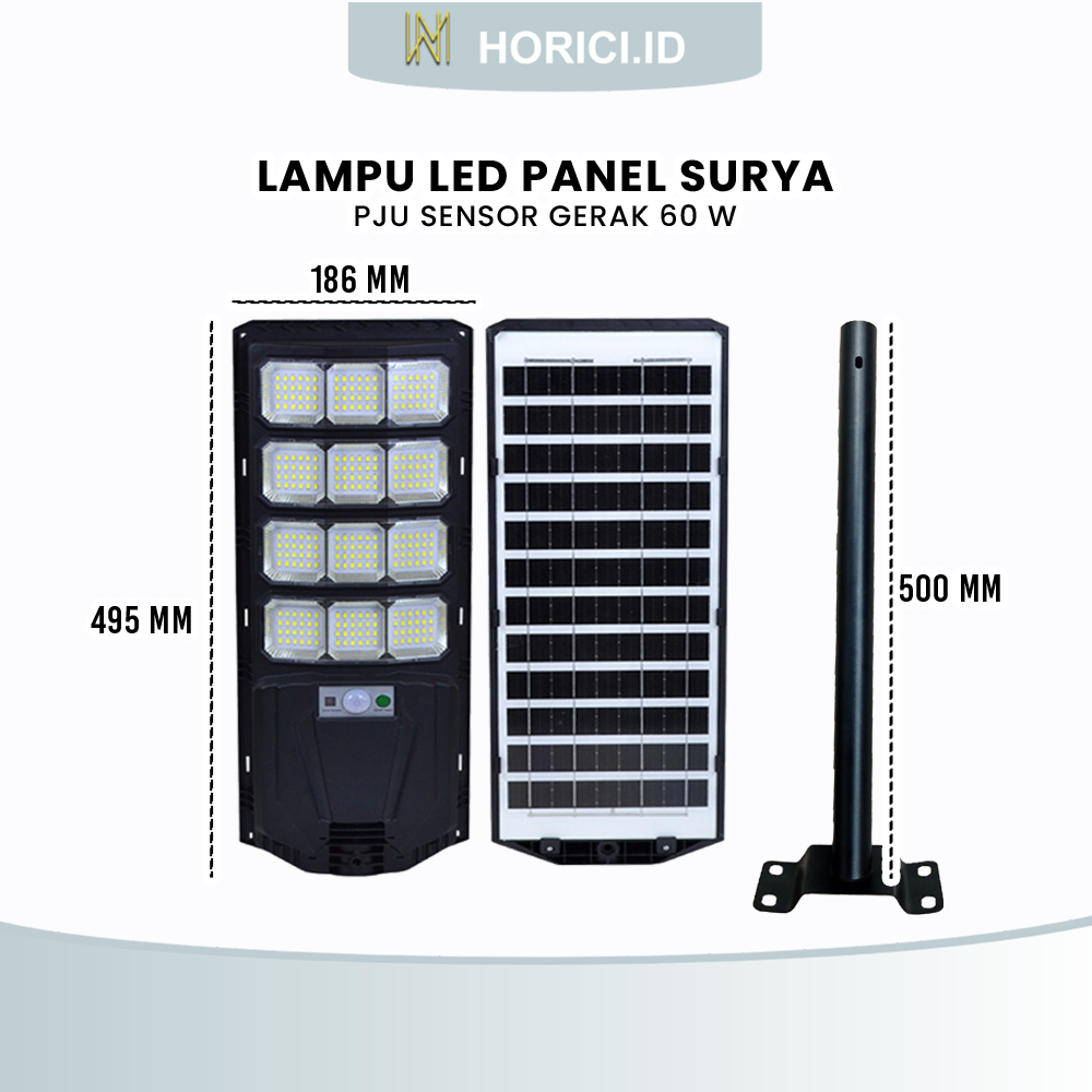 60 Watt 6000 mAh Lampu Panel LED Surya Solar PJU Sensor Gerak Remote Terang Tahan Air IP67