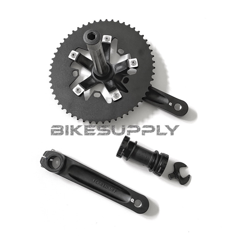 Crankset Litepro Oval + BB Hollowtech 2 HT2 Crank Set Sepeda 52T 54T 56T 58T Warna Hitam Black