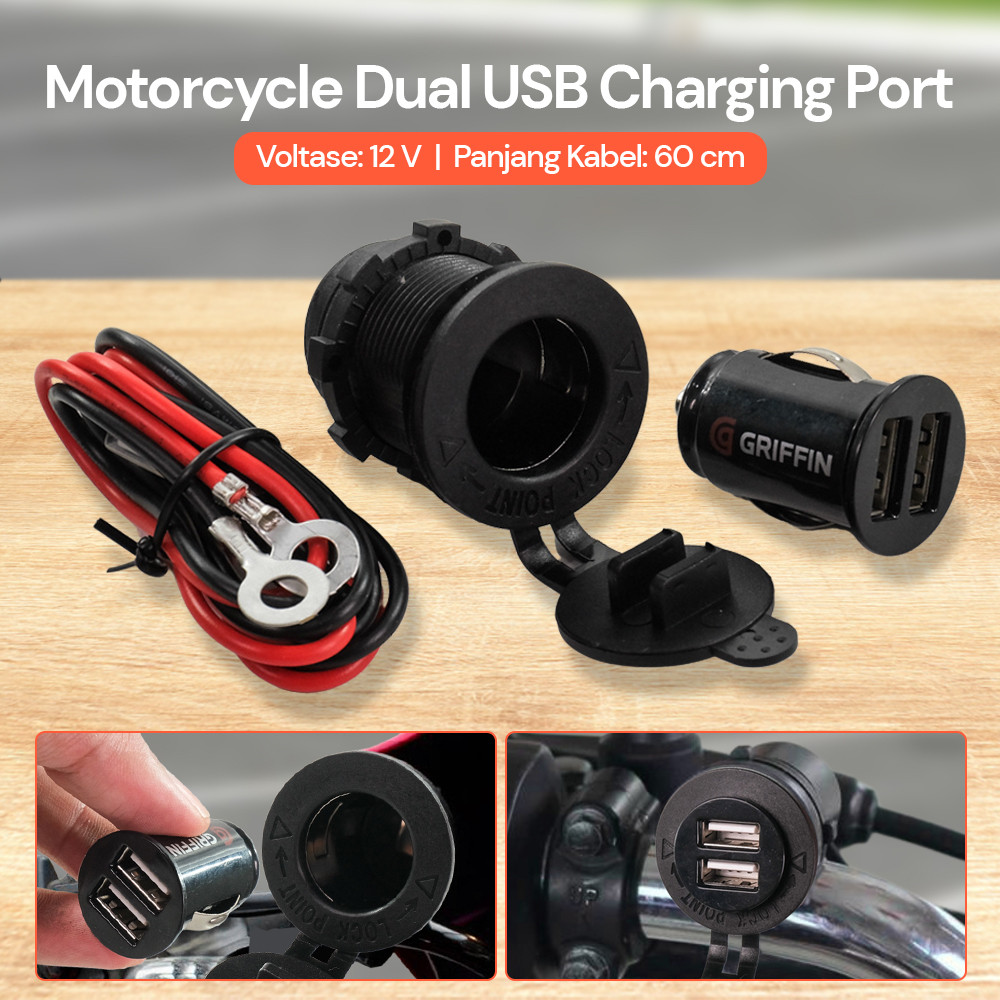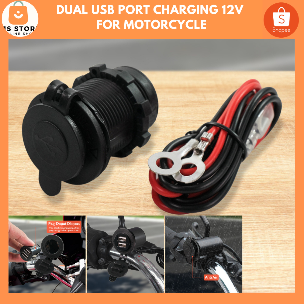 Tempat Cas HP Motor / Adaptor Charger USB Motor / Dual USB Port Charging 12V for Motorcycle - QC2