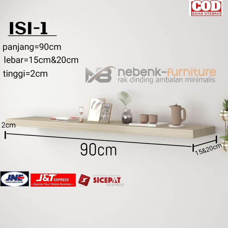 hiasan rak dinding minimlais rak serbaguna.( ISI 1).panjng .90cm.& lebar : 15cm,20cm.