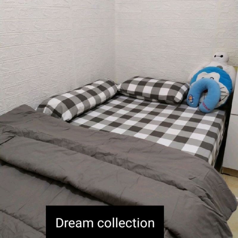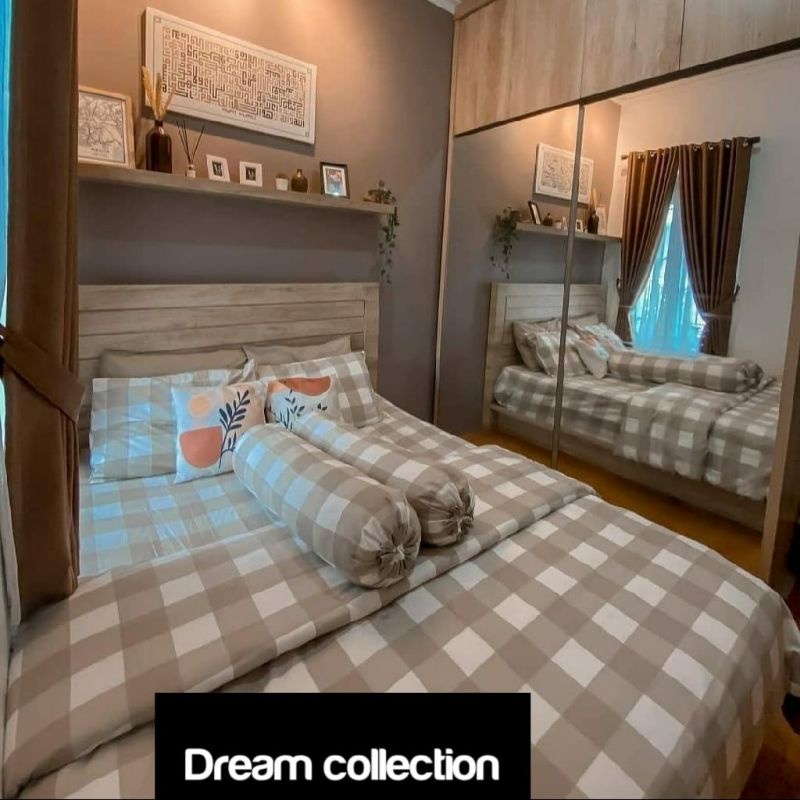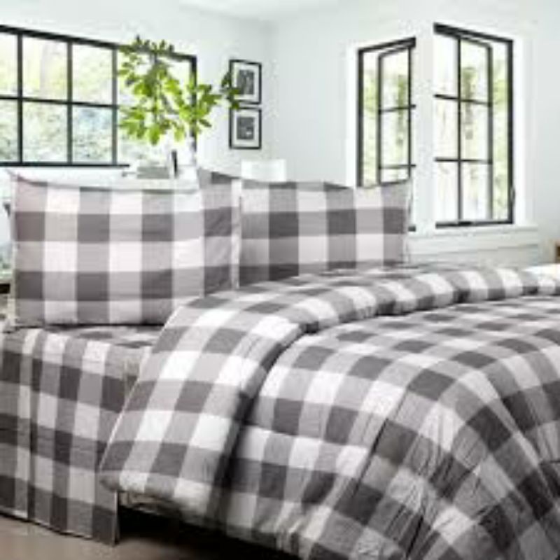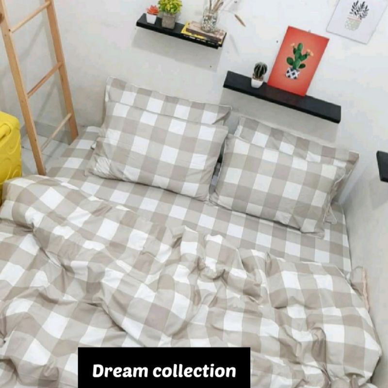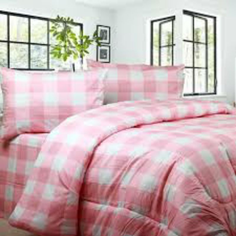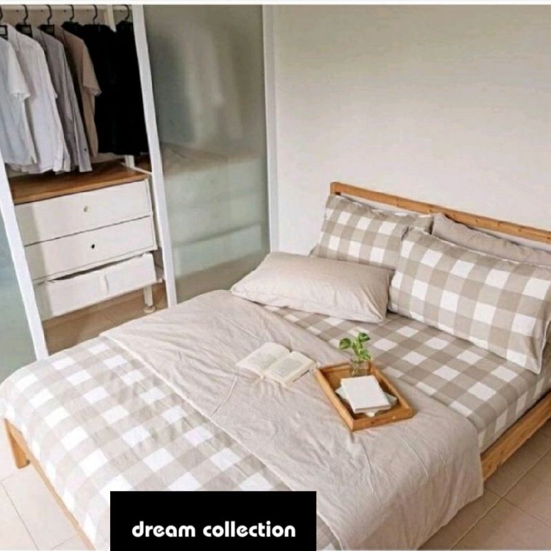 Bedcover Set + Sprei Aesthetic Minimalis Kotak-Kotak Gigham Motif Emily Series Ukuran Double Pain