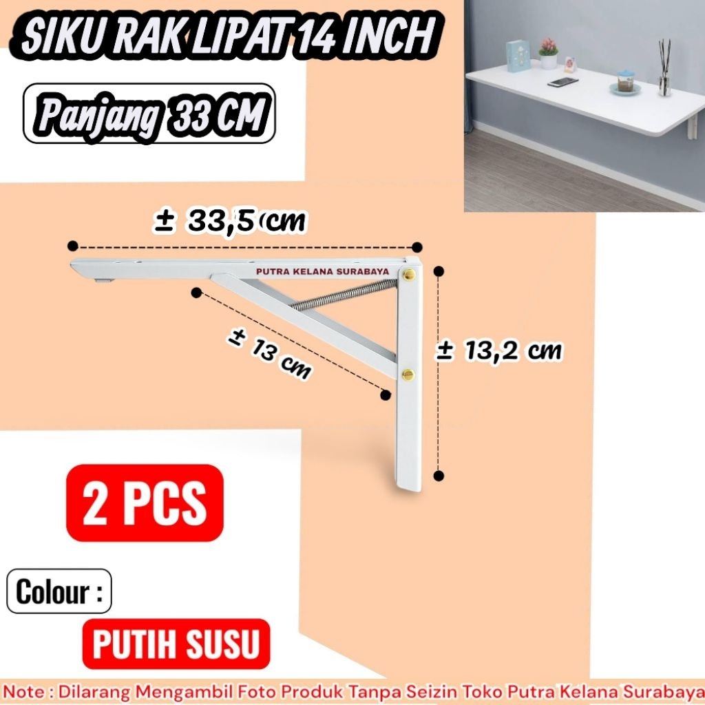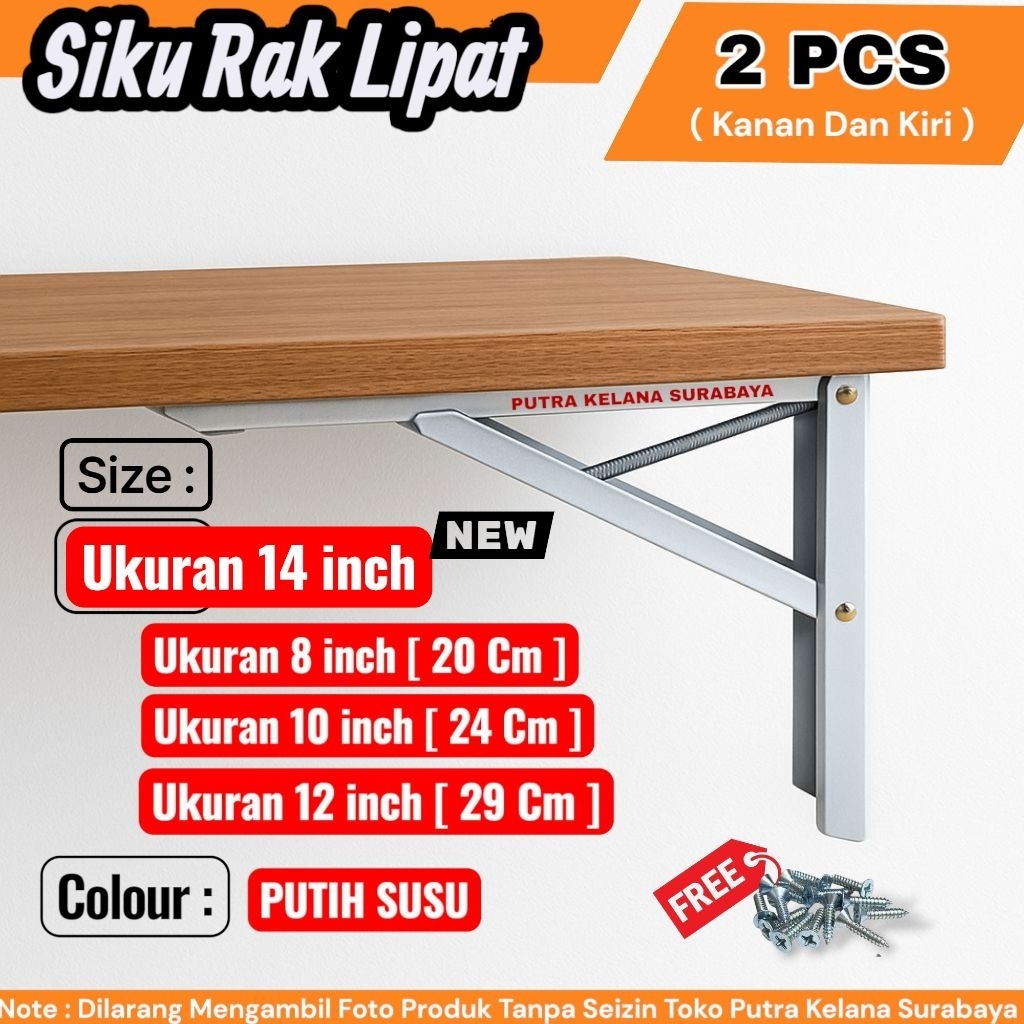 [ 2 PCS ] SIKU RAK LIPAT PER 8 ,10 ,12 , 14 inch inch Putih / Bracket Siku Rak Lipat / Siku Rak Lipat Ambalan Putih