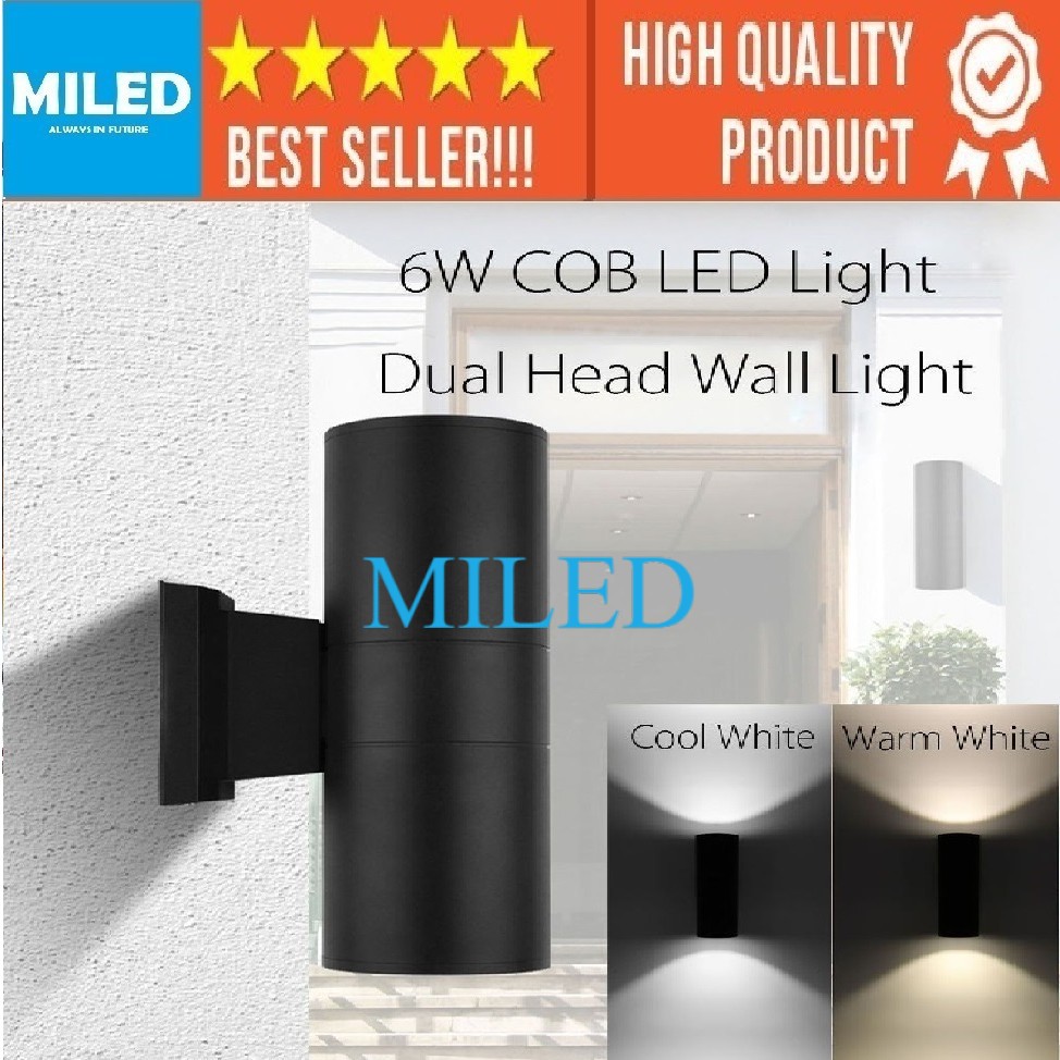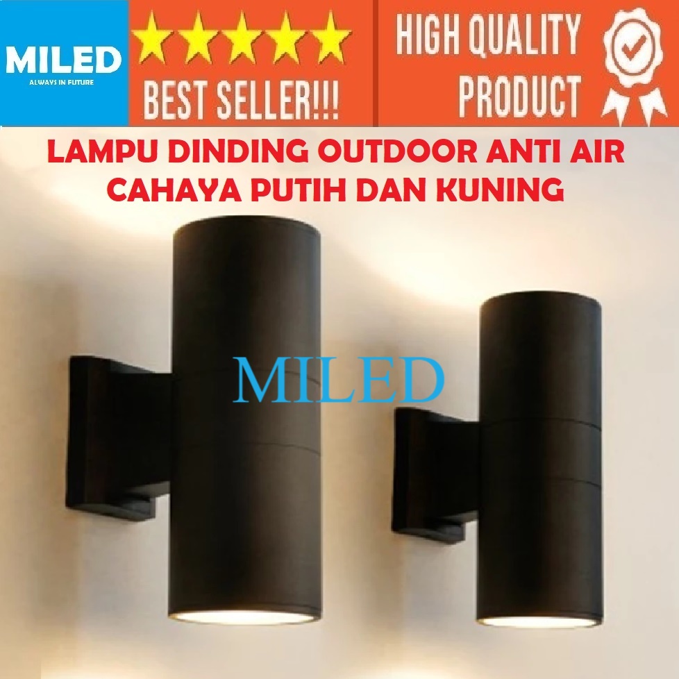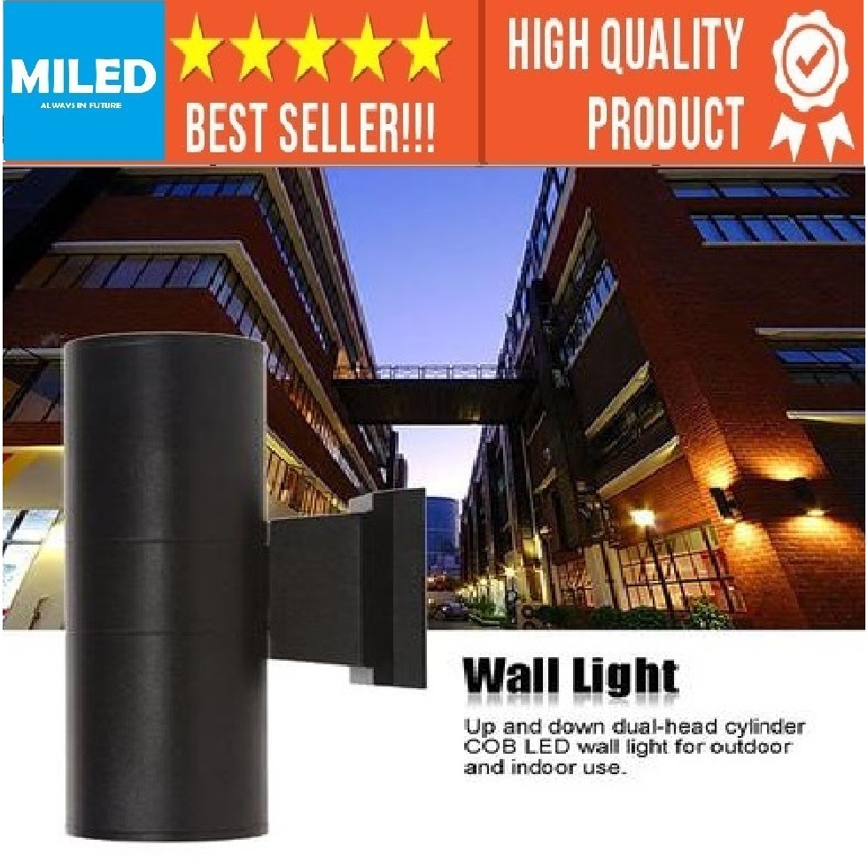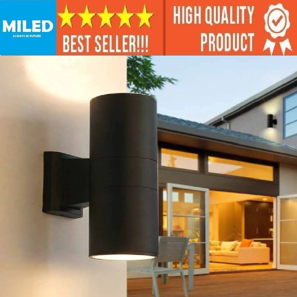LAMPU DINDING PILAR OUTDOOR ANTI AIR / LAMPU TEMBOK MINIMALIS BULAT HITAM 2 SISI LED INCLUDE LAMPU