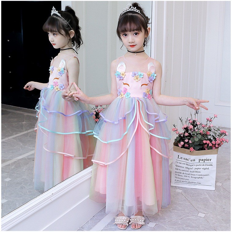 CAMBO.SHOP Gaun Pengantin Anak Unicorn Princess Panjang 3-12 Tahun untuk Acara Spesial