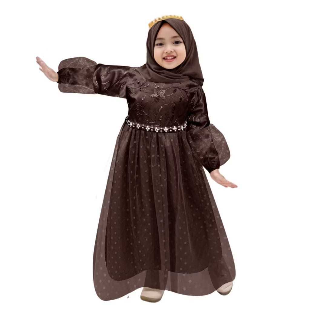 Gamis Anak Terbaru 2026 Emerald Blue Dress Anak Perempuan 1 2 Tahun Baju Muslim Warna Coklat Mahogany Baju Muslimah Syari Set Kerudung Hijab Anak KAP196