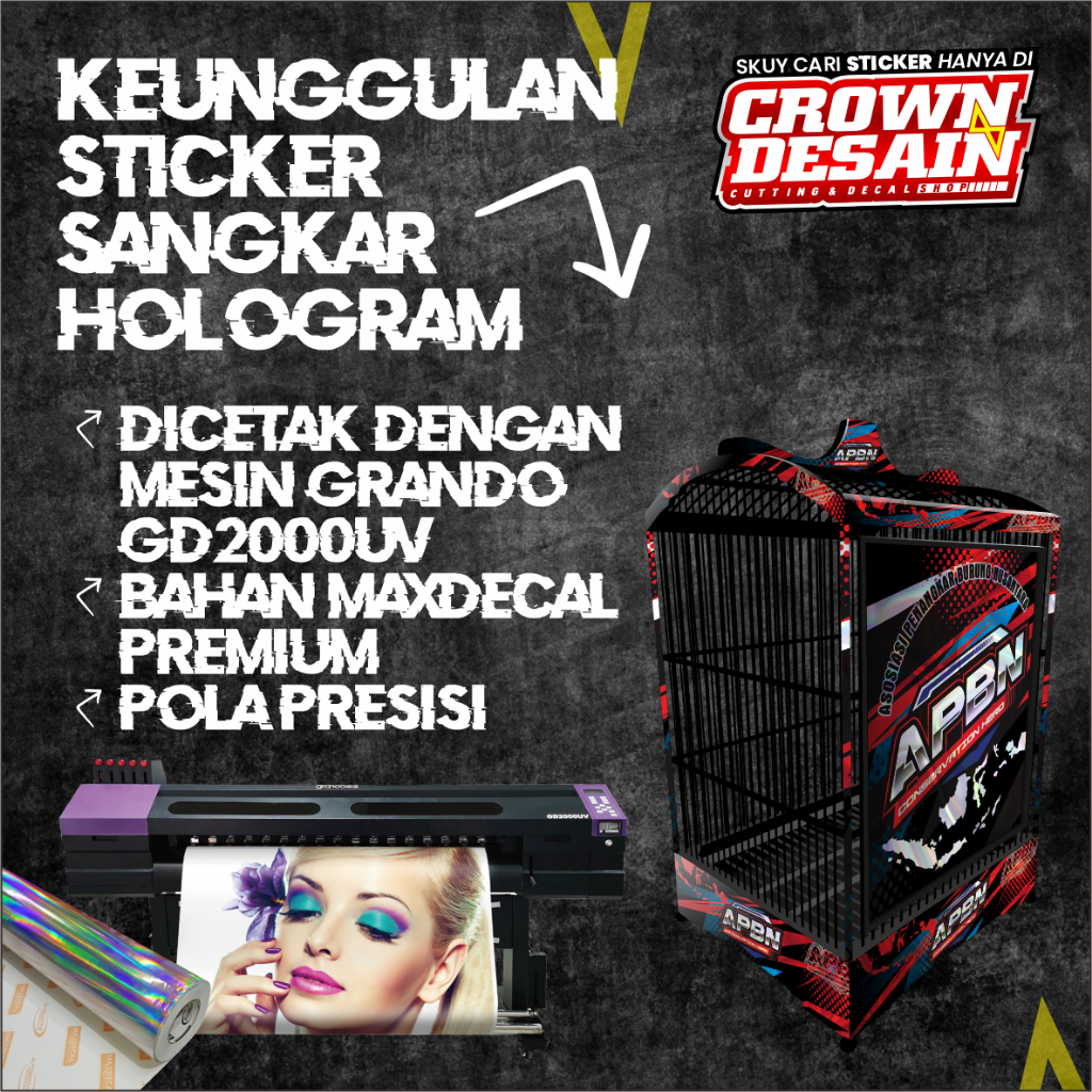 Decal Stiker Sangkar Kenari NO 1 2 3 - Stiker Decal Kandang Kotak BNR Variasi Hologram UV - TK-HUV