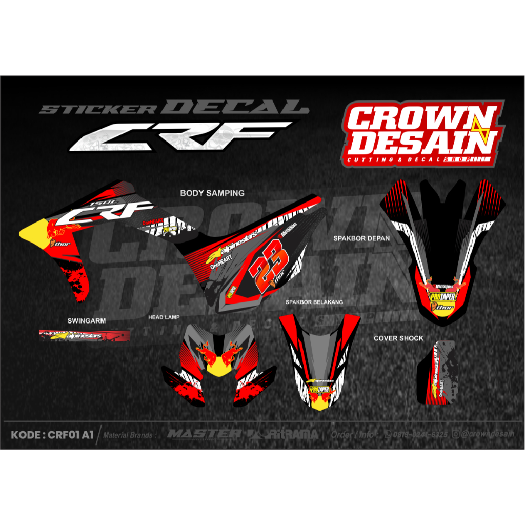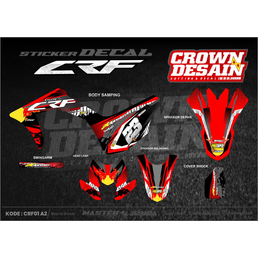 DECAL FULL BODY CRF 150 BAHAN PREMIUM SUDAH DIPOTONG TAHAN LAMA - STIKER DECAL MOTOR FULL BODY KANAN KIRI BISA CUSTOM - CRF