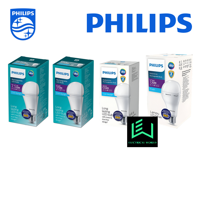 Lampu Emergency LED Bulb Rechargeable Philips Led 7.5W 9W Radiantline 8W 13W 7.5 9 8 13 W Watt Putih