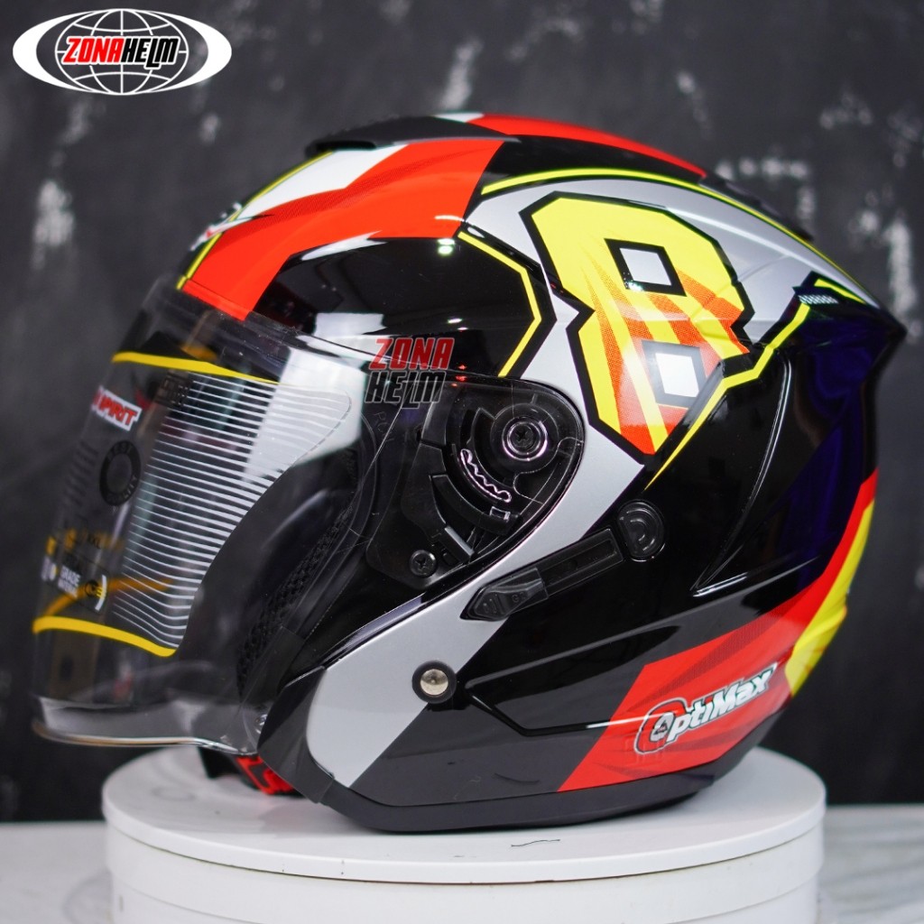 HELM HALF FACE G2 OPTIMAX ORIGINAL SEMUA MOTIF SNI DOUBLE VISOR