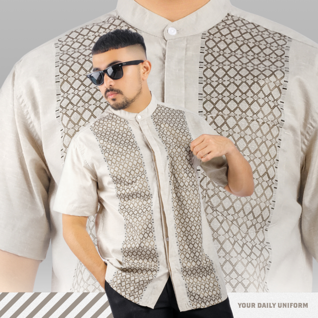 DGM Baju Koko Pria Lengan Pendek Bordir Premium Ivory Bordir Tribal Baju Koko Ameer Series 2889