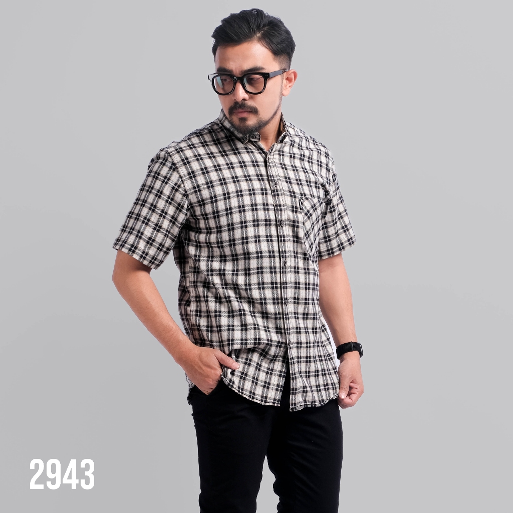 DGM Kemeja Flanel Pria Lengan Pendek Ivory Kotak Hitam Kemeja Pria Flanel Pria Kemeja Pendek 2943