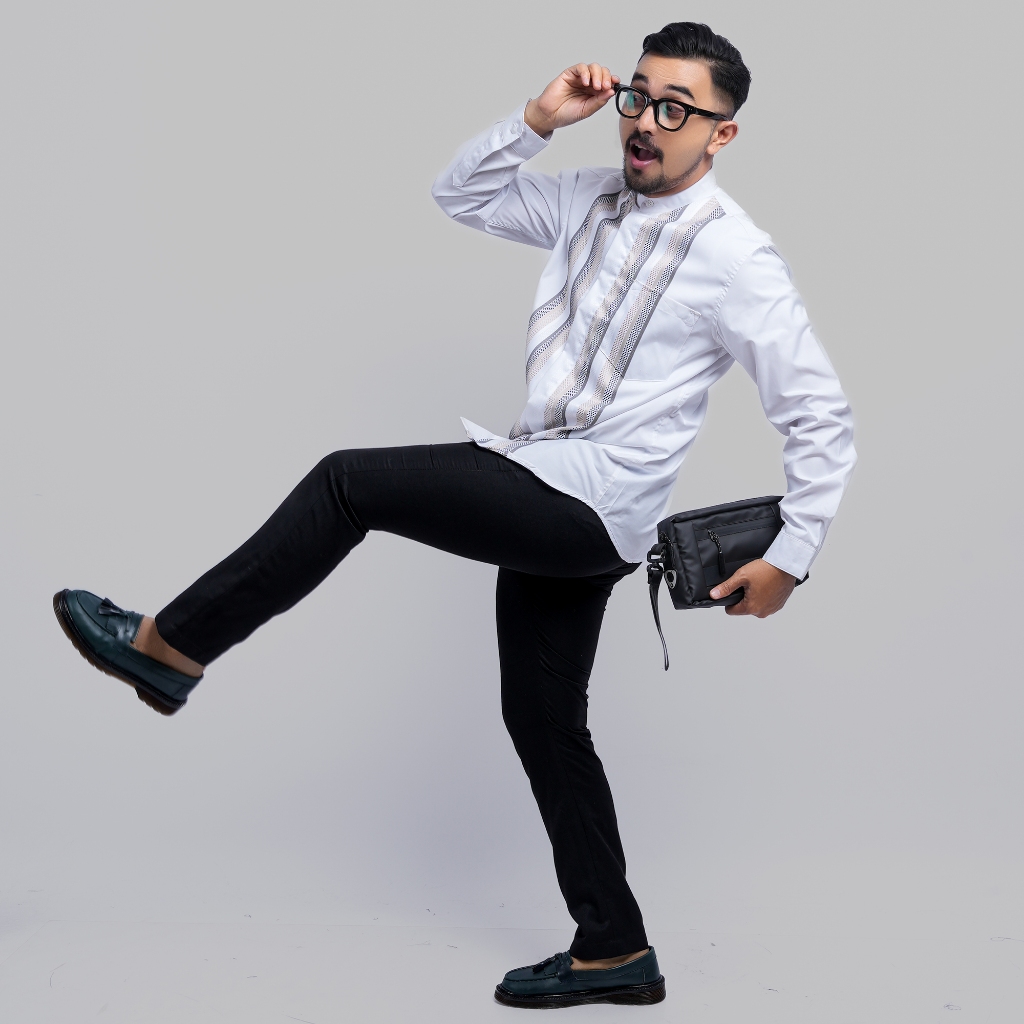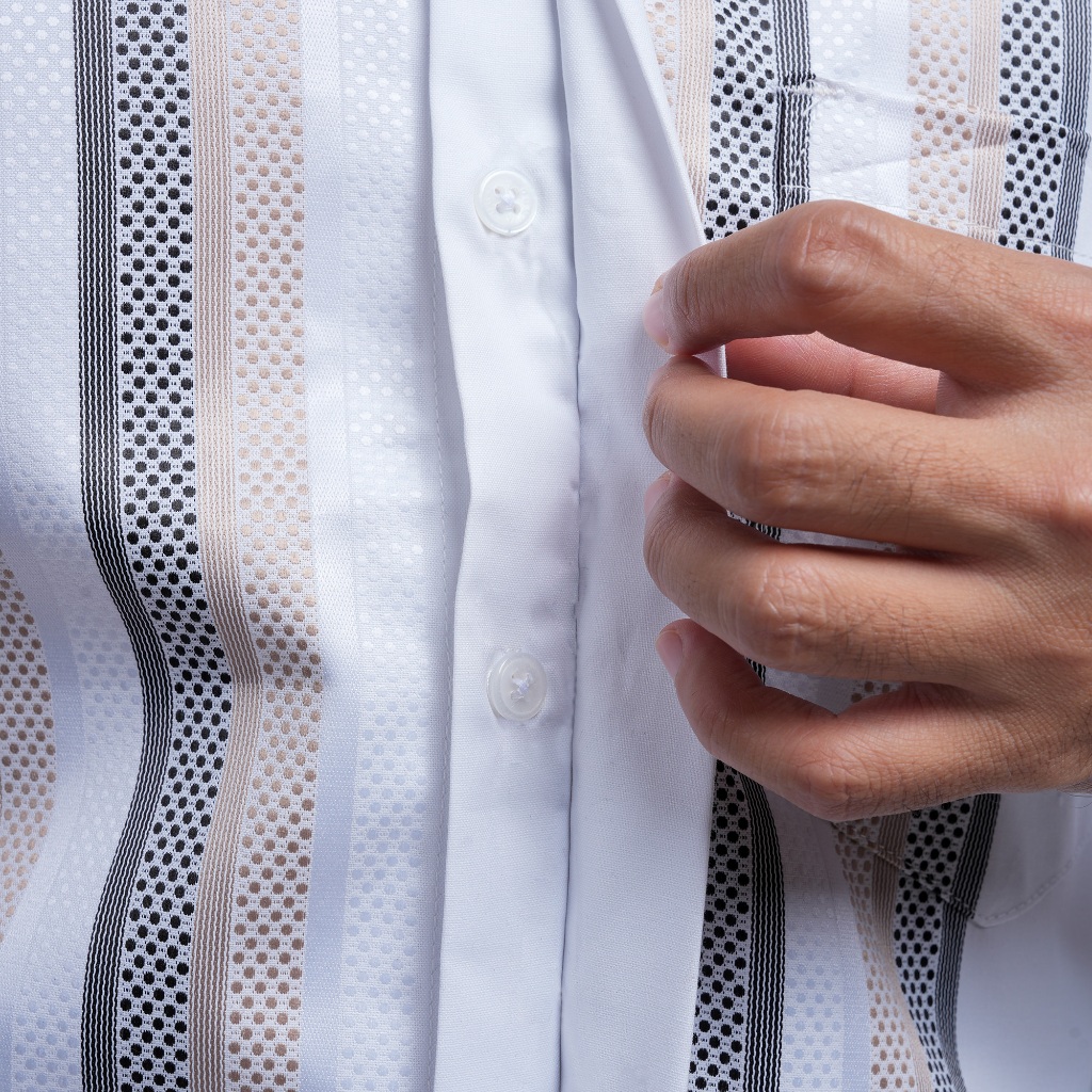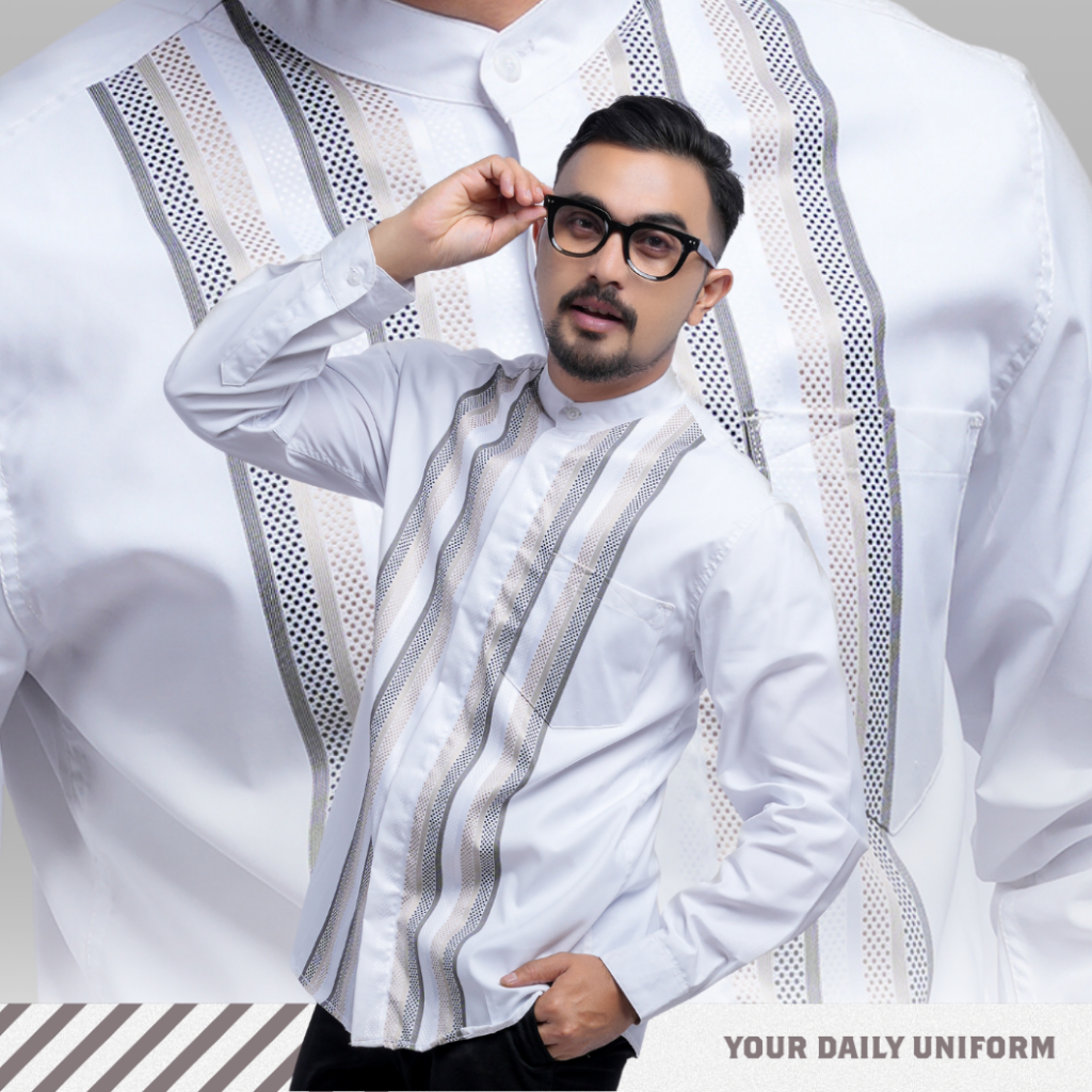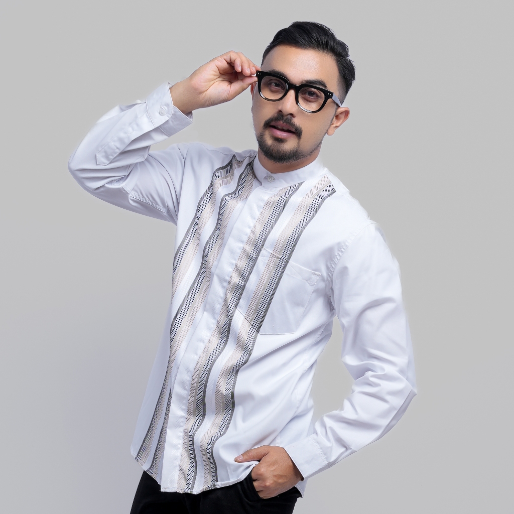 DGM Baju Koko Putih Pria Lengan Panjang Bordir Premium Putih Motif Lingkaran Krem-hitam Baju Koko Kemeja Koko Elzhar Series 3315