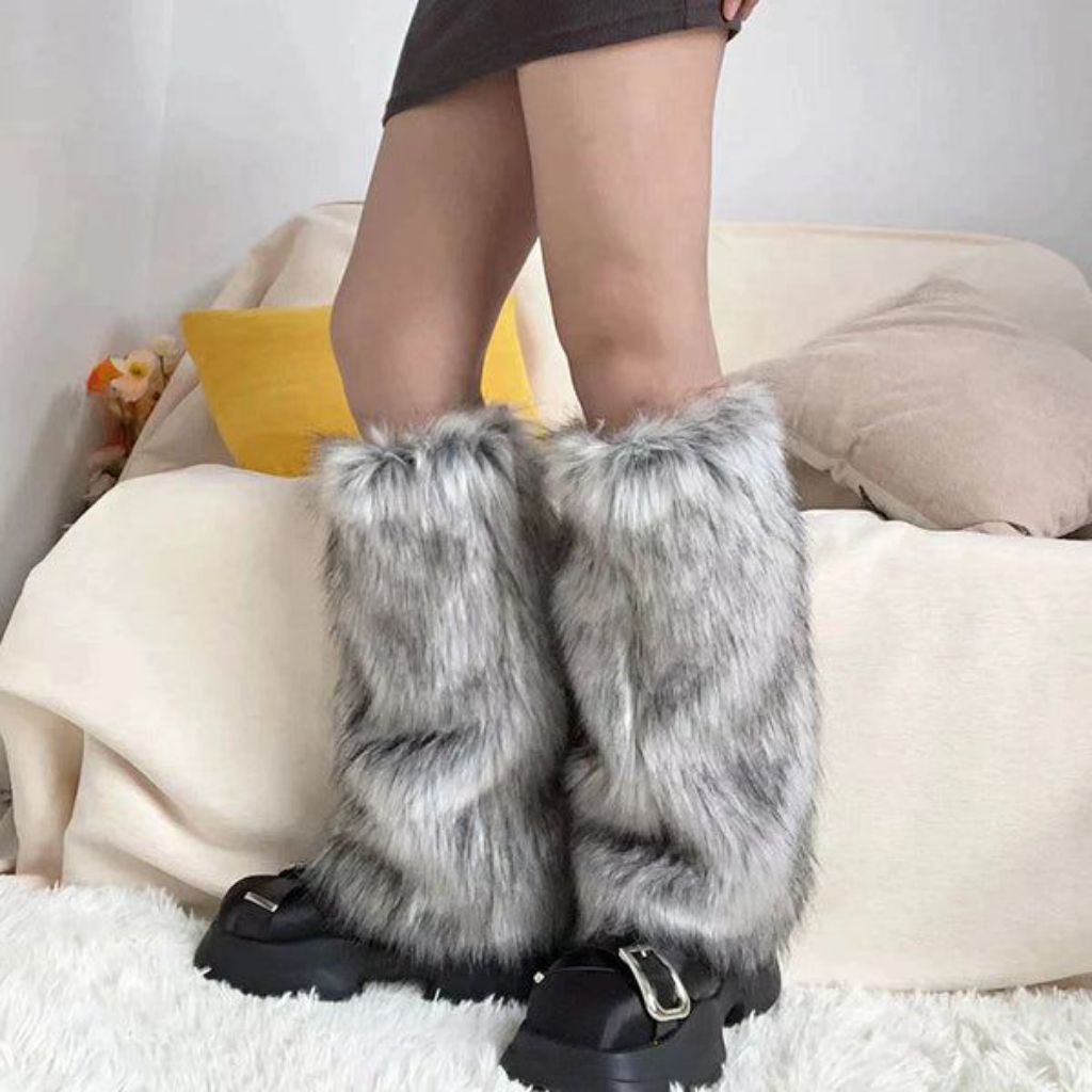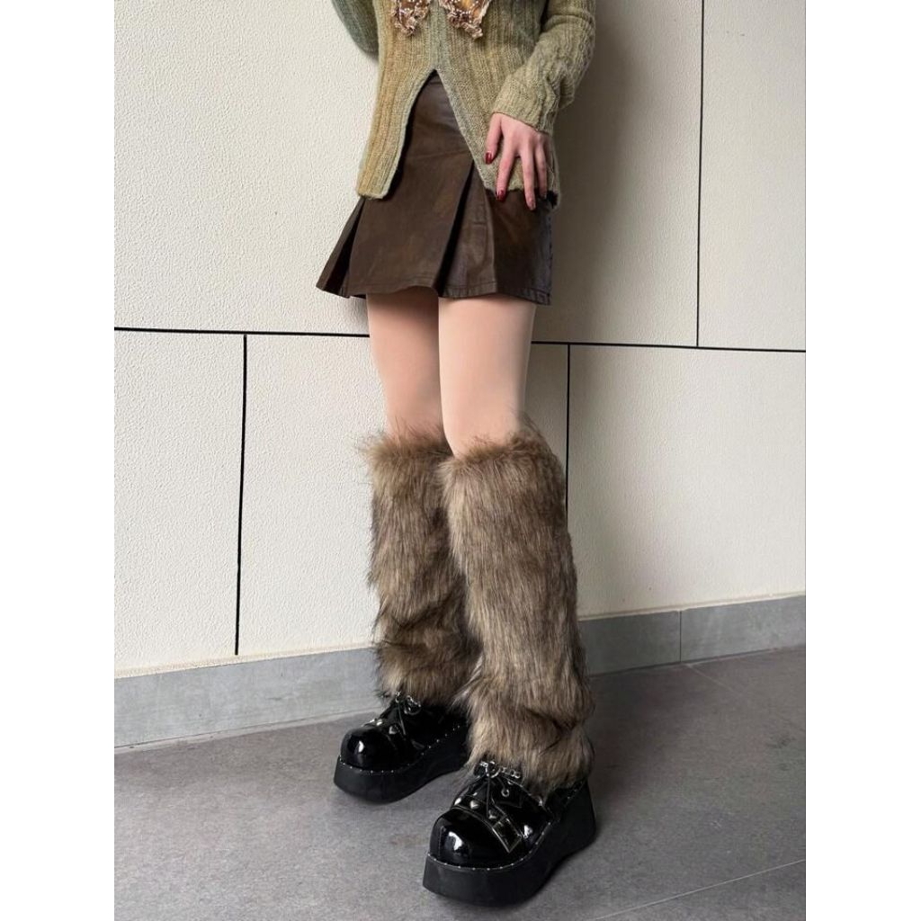 Leg Warmer Bulu Tebal Wanita Korea | Penghangat Kaki Winter Style | Cocok Untuk Boots & Fashion Aesthetic