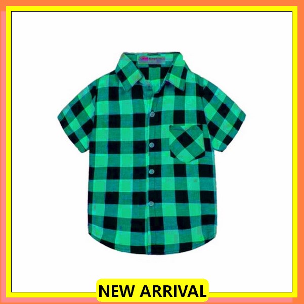 Kemeja Anak Laki Laki Import - Kemeja Anak Lengan Pendek Polos - Branded Kemeja Anak Cowok 1-13 Tahun - Baju Hem Anak Cowok Terbaru Kemeja Flanel Anak Lengan Pendek Usia 8-12 Tahun / Kemeja Anak Import Murah Bahan Flanel Tartan Green