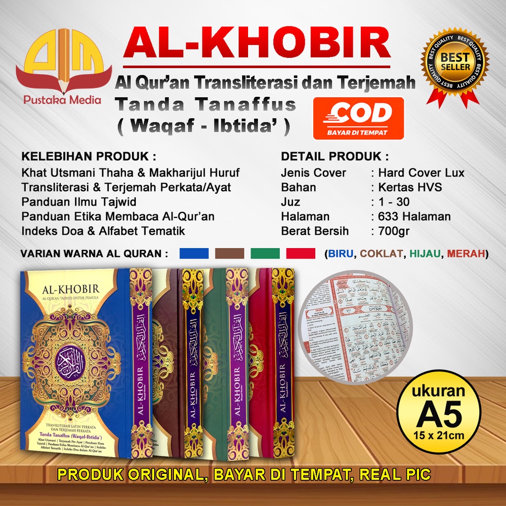 Al Quran Al Khobir Tanda Tanaffus Waqaf Ibtida Ukuran A5 Alquran Transliterasi Terjemah Perkata Warna