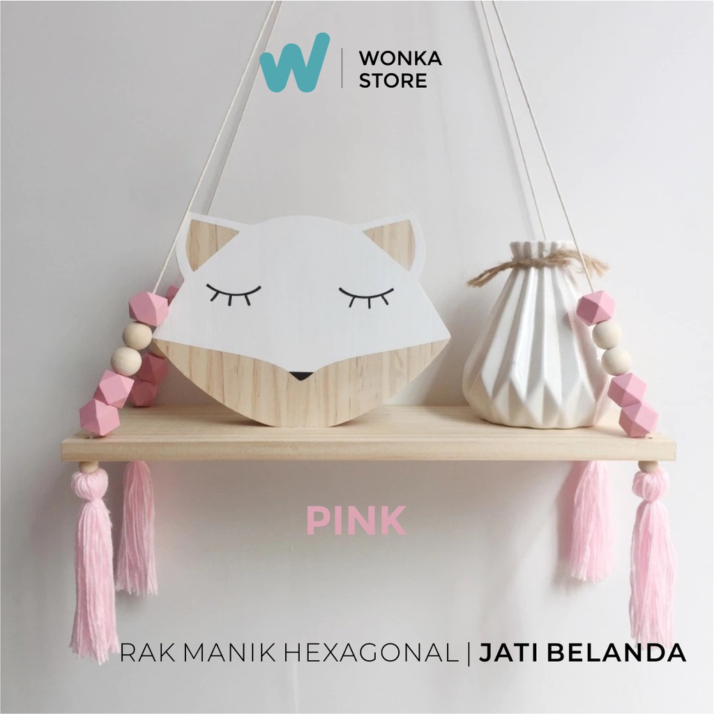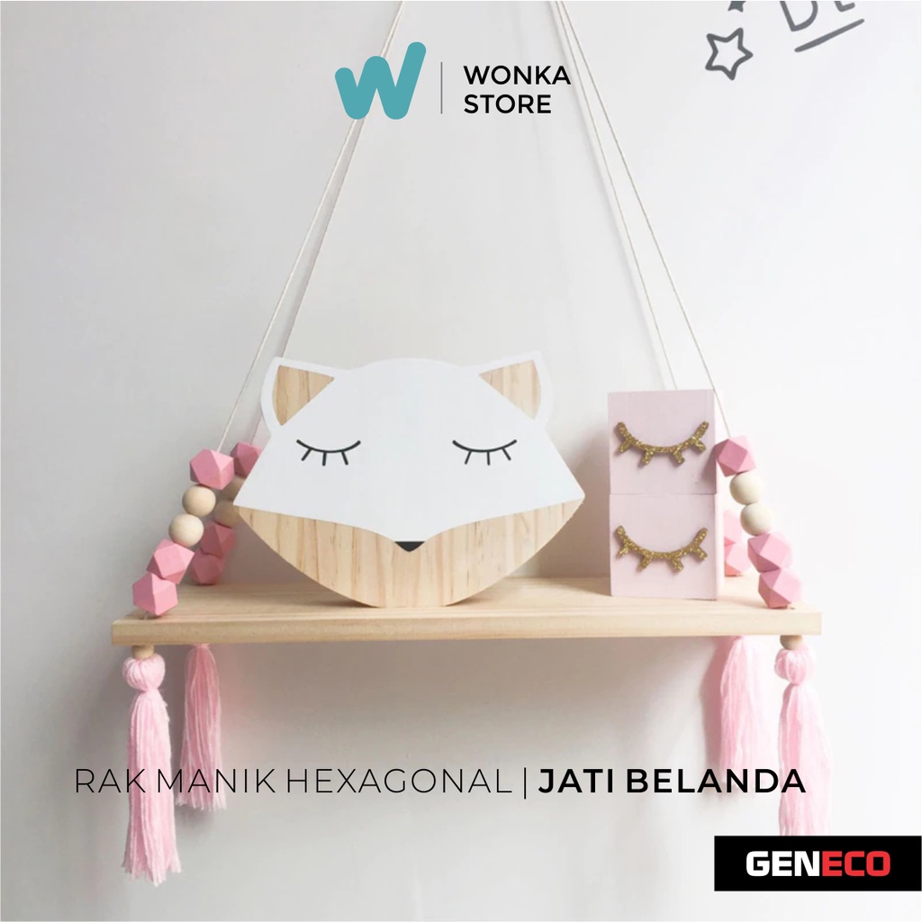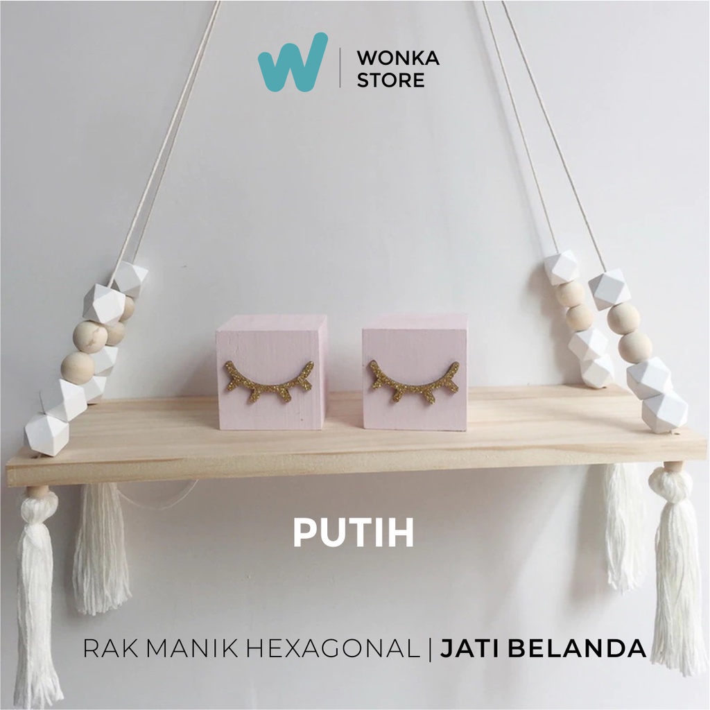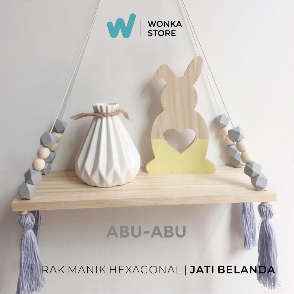 RAK DINDING MANIK HEXAGONAL PREMIUM Nordic Diamond Rak Tali Gantung Macrame Kayu Jati Belanda Ambalan - RM