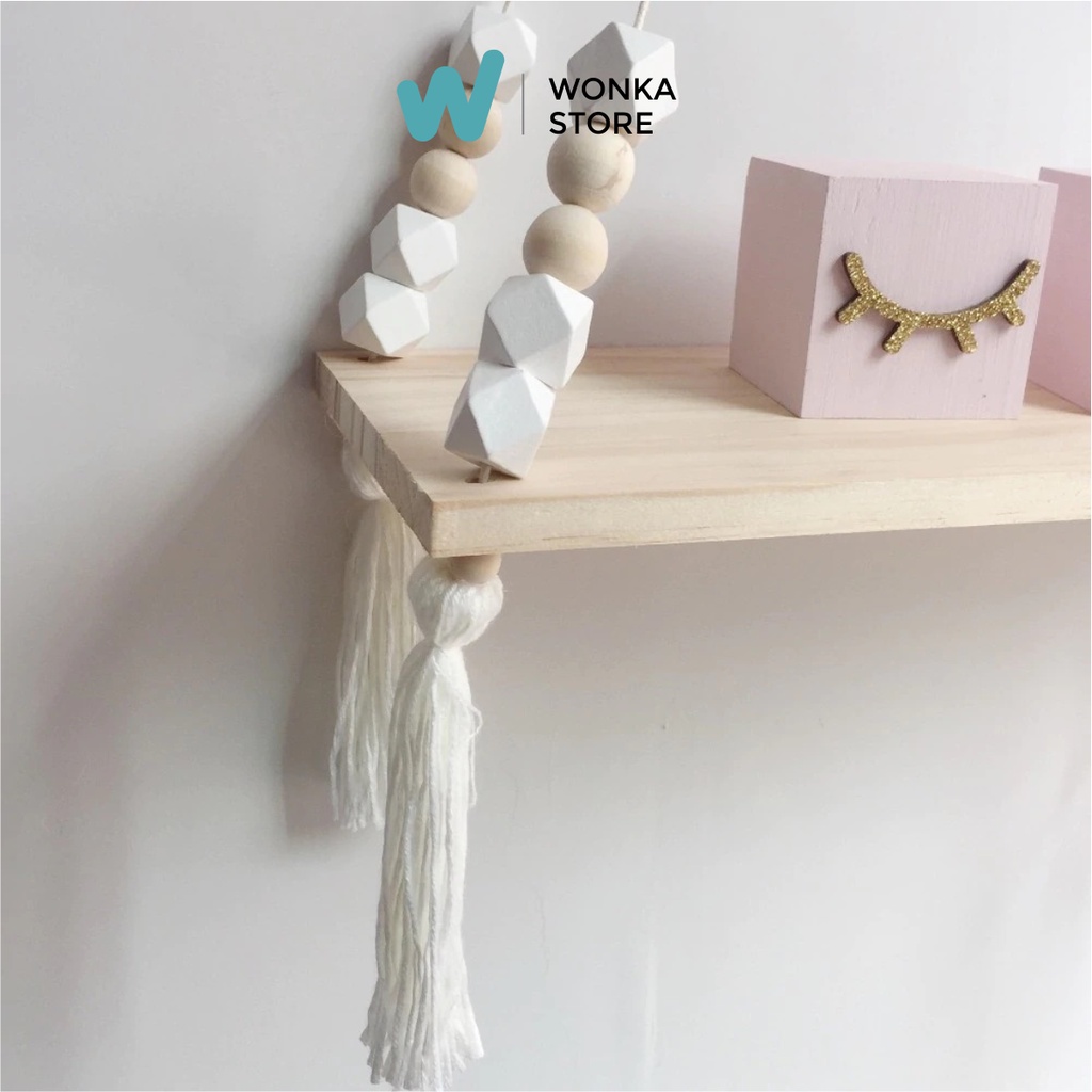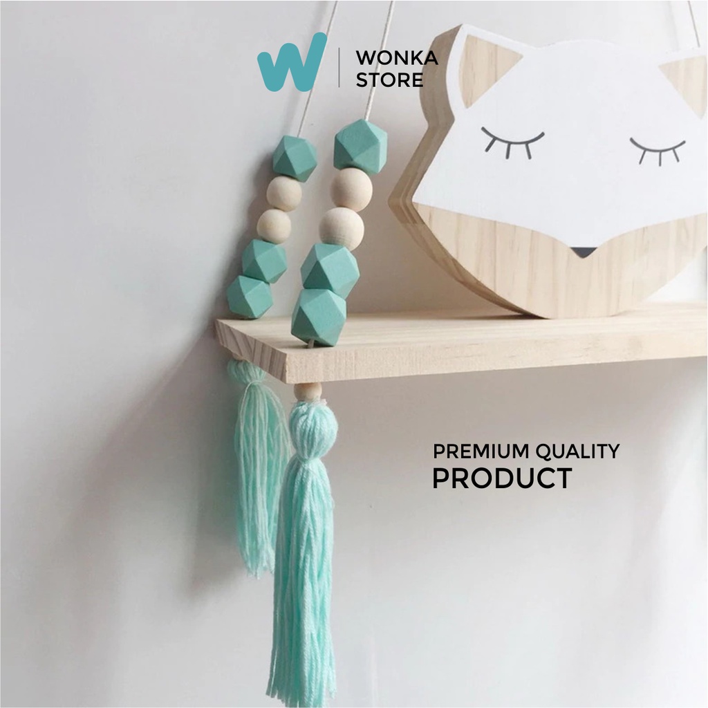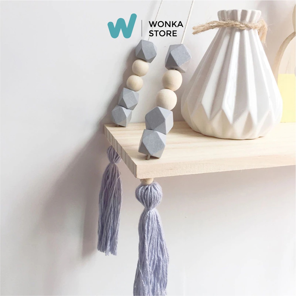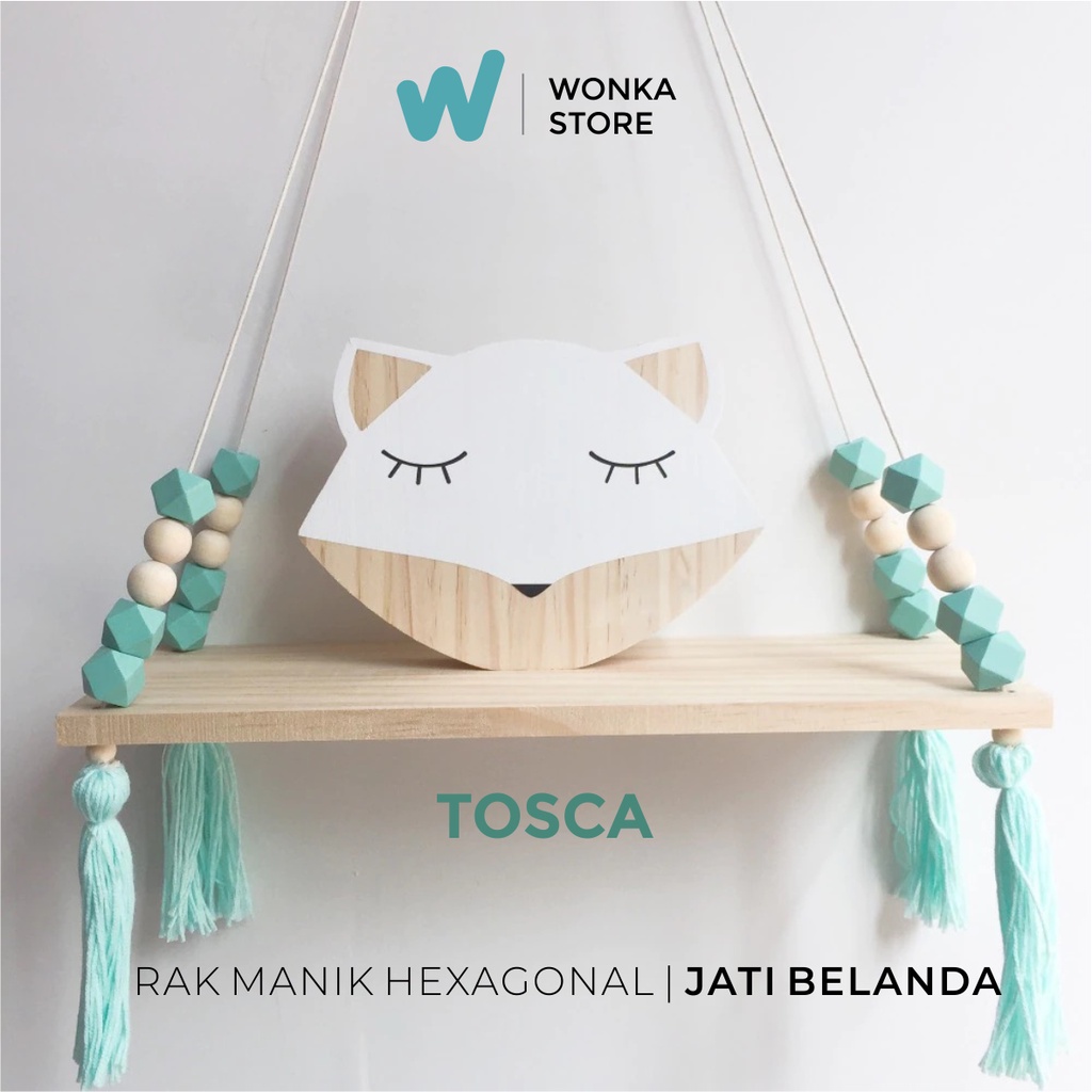 RAK DINDING MANIK HEXAGONAL PREMIUM Nordic Diamond Rak Tali Gantung Macrame Kayu Jati Belanda Ambalan - RM