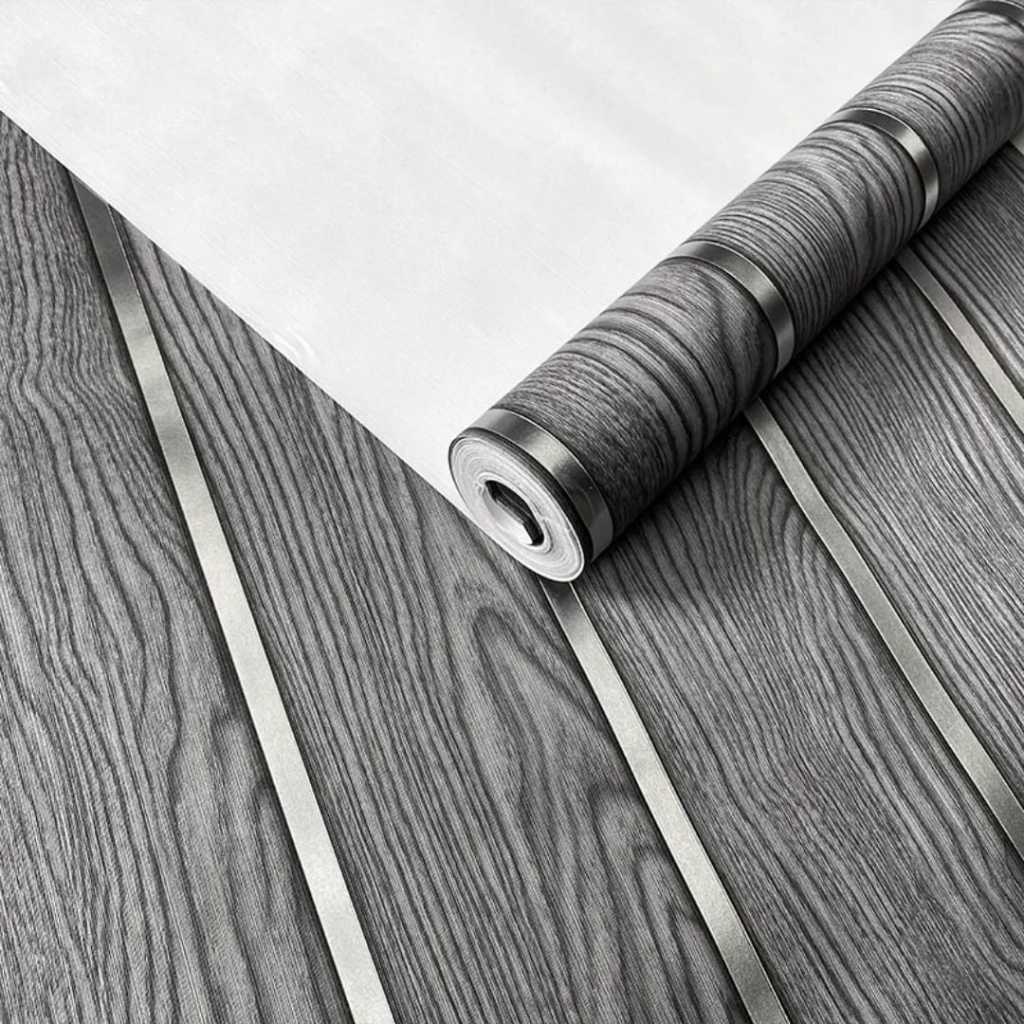 WALLPAPER DINDING RUANGAN STIKER DEKORASI RUMAH MOTIF PANEL ABU MUDA GARIS SILVER UKURAN 45CMX8M